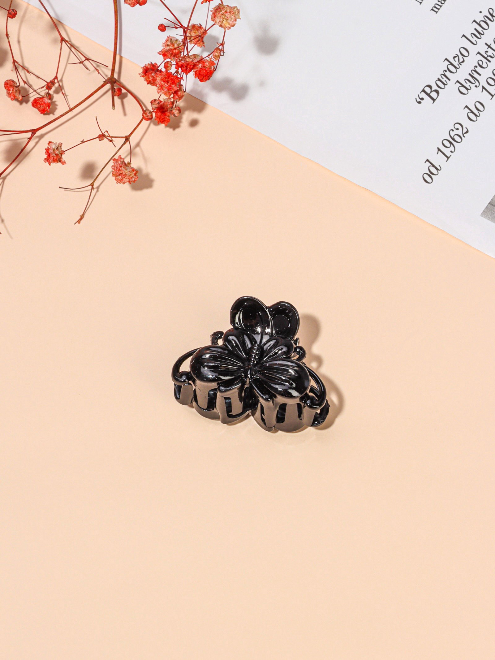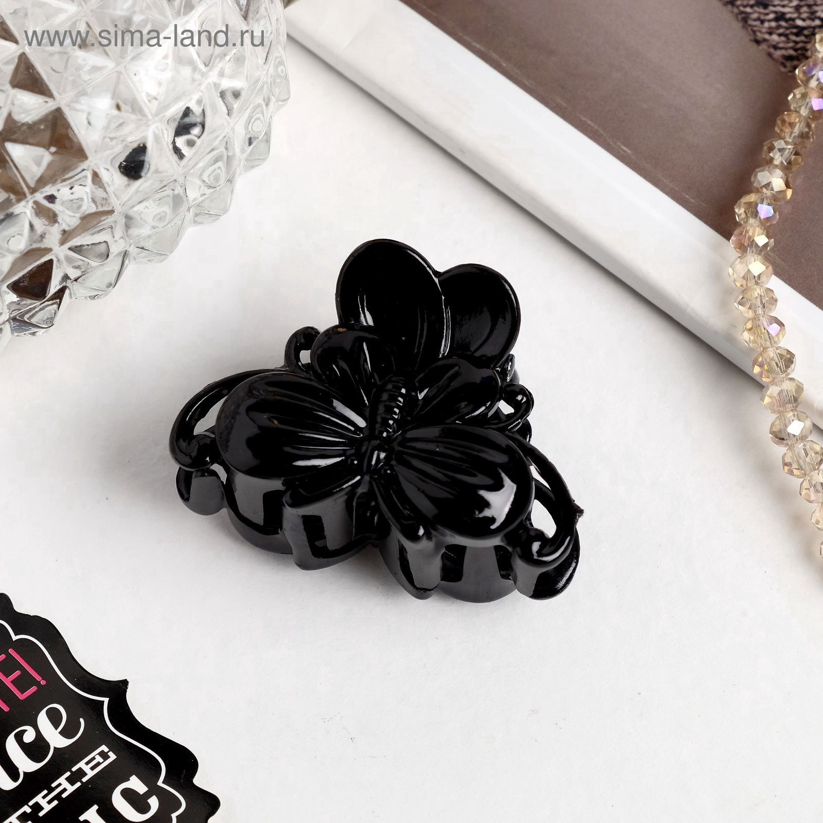 Крабик для волос "Глянец", бабочка, 4 см, чёрный, 4 см., Китай