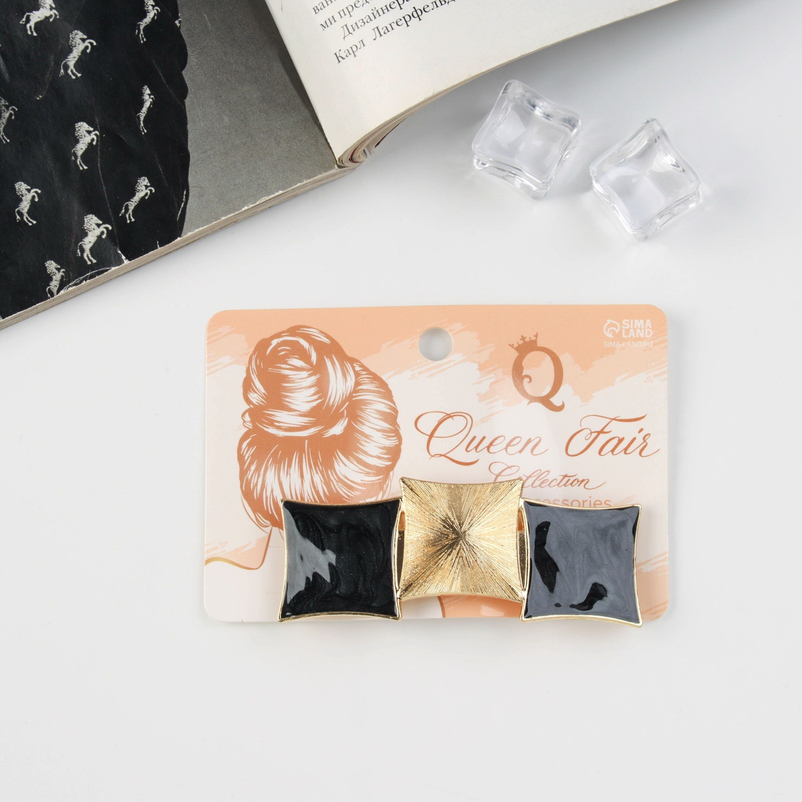 Заколка - автомат для волос "Геометрия", три квадрата, 7.5 см, тёмная эмаль, 7.5 см., QF, Китай
