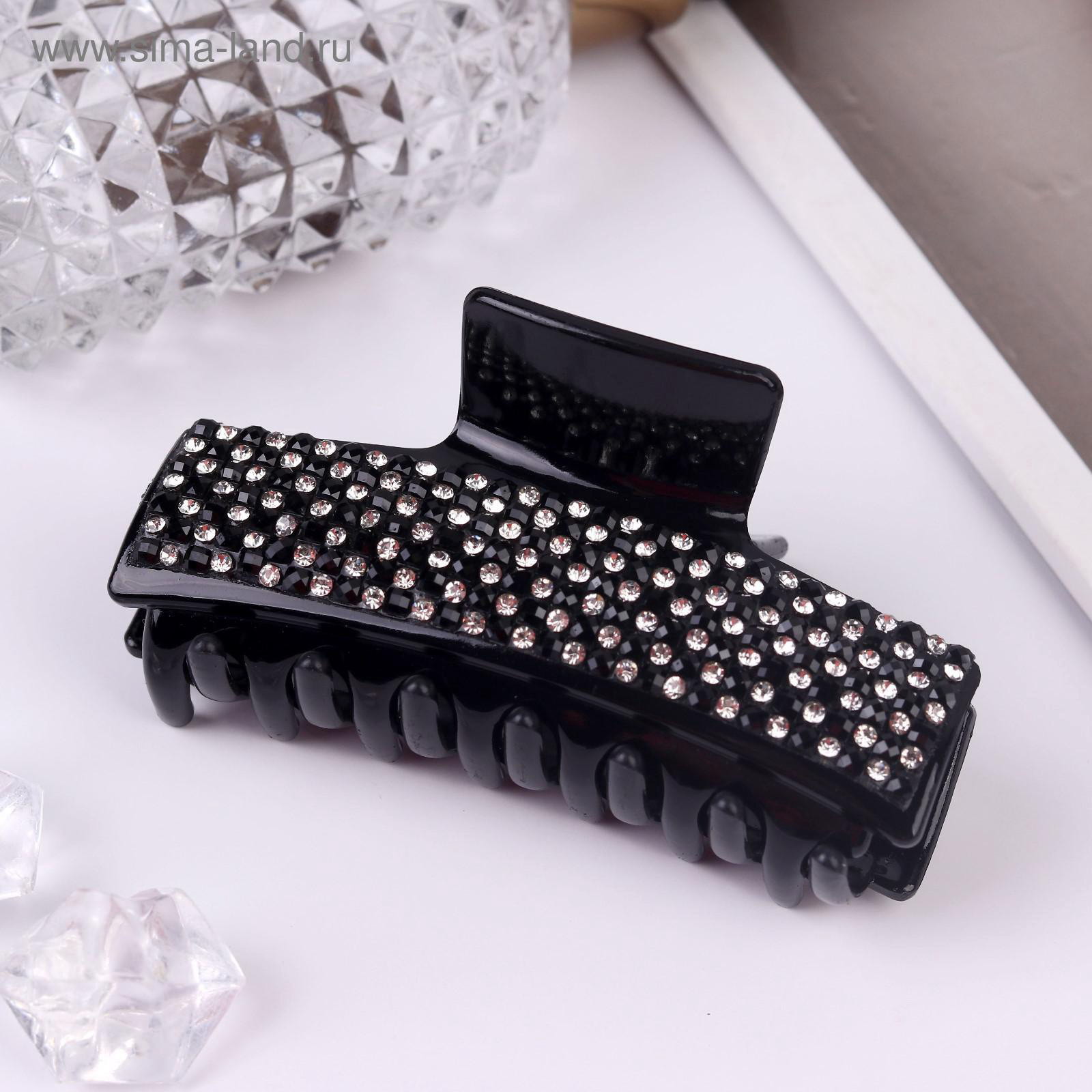Крабик для волос "Торжество", стразы, 8 см, чёрный, Китай