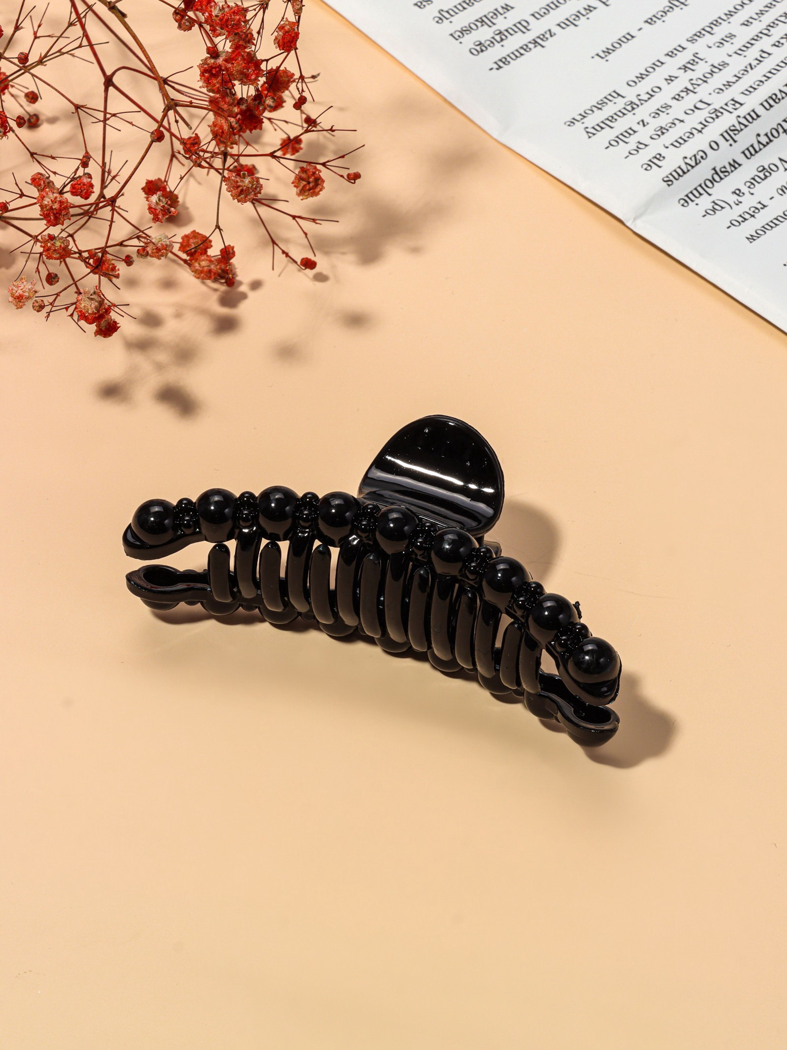 Крабик для волос "Глянец", бусинки дуга, 10.5 см, чёрный, 10.5 см., Китай