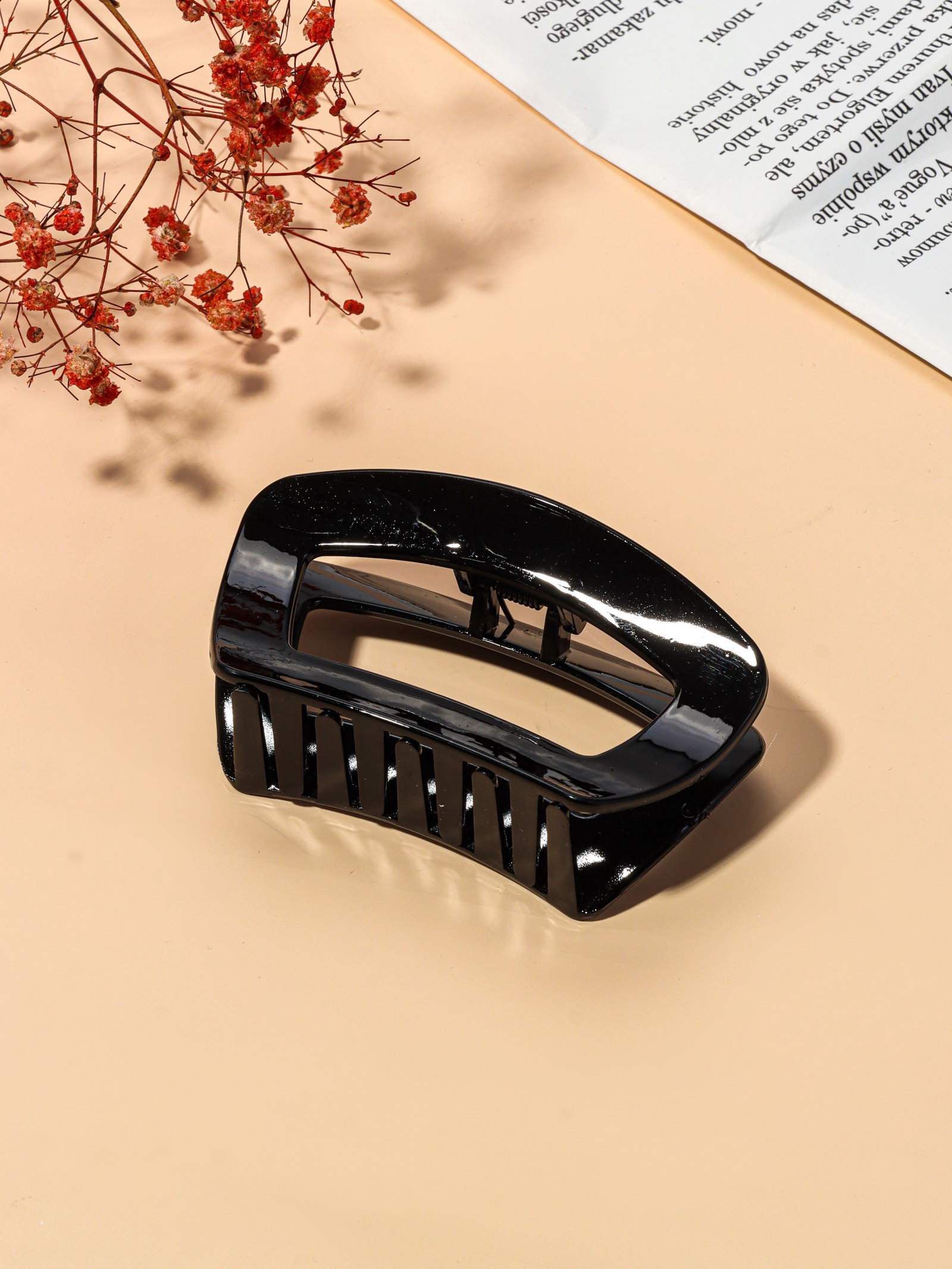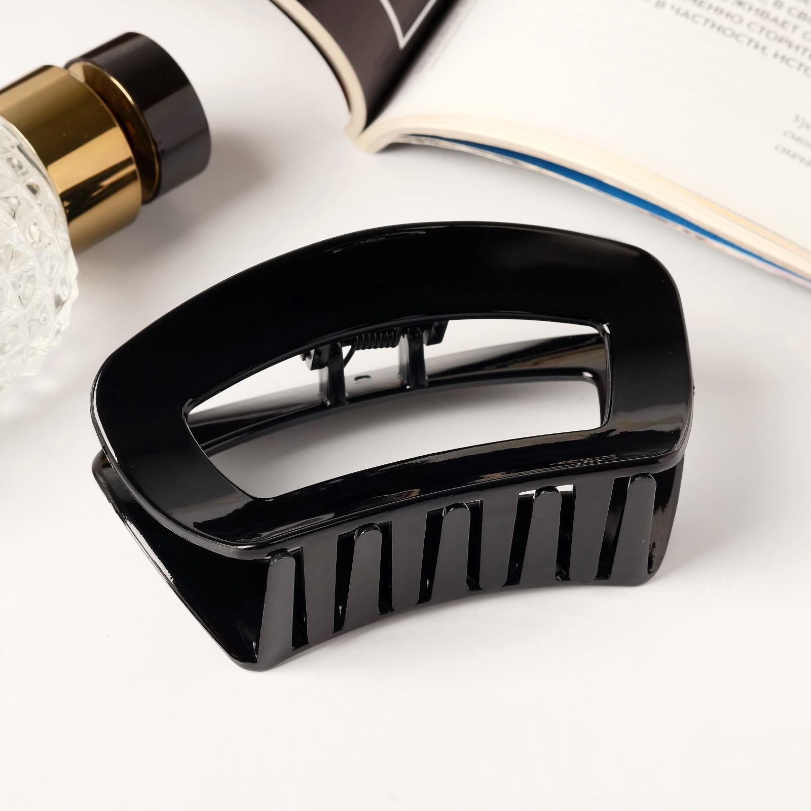 Крабик для волос "Глянец", изгиб классика, 9.5x5 см, чёрный, 9.5x5 см., Китай