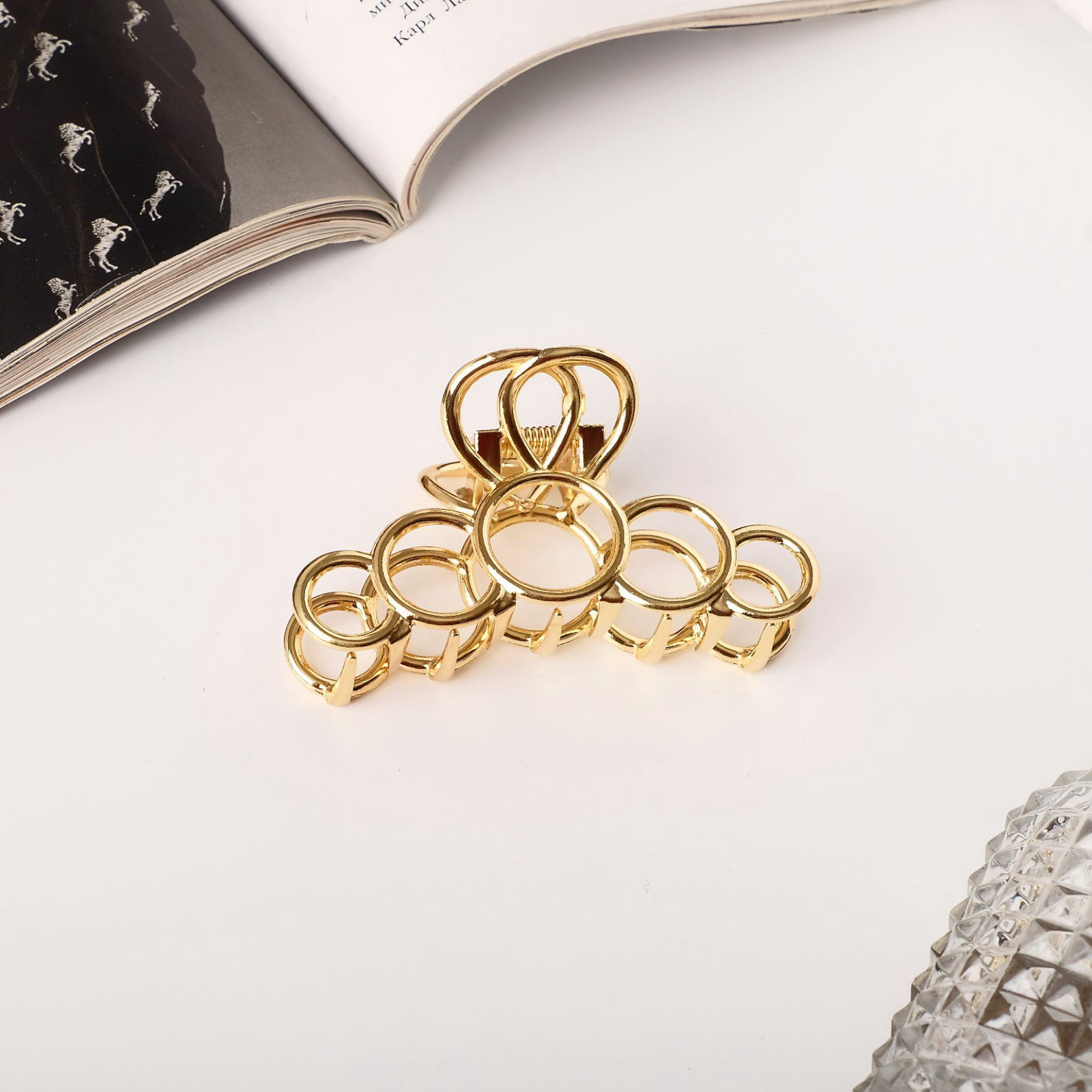 Крабик для волос "Либерти", кольца, 7.5 см, золото, 7.5 см., Китай