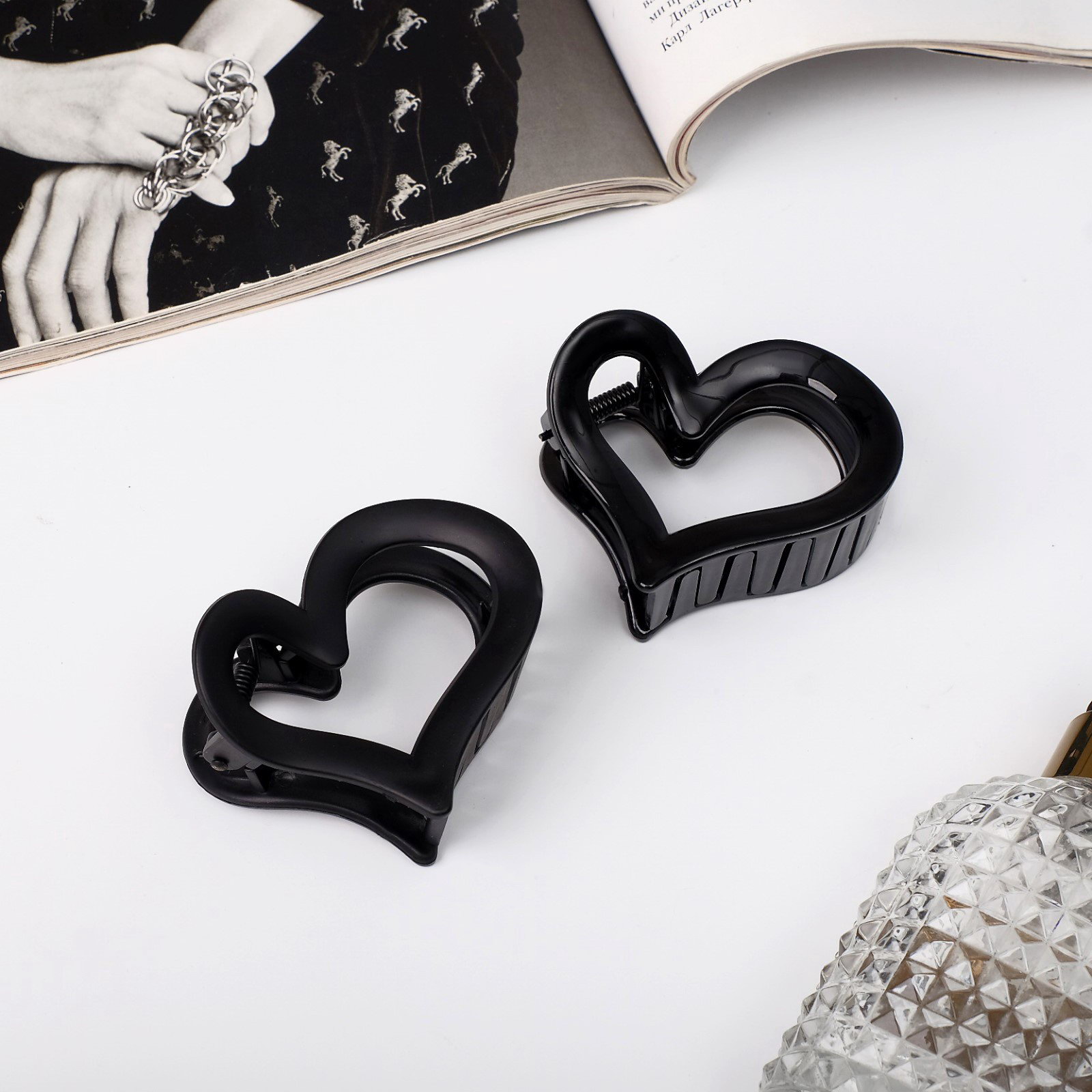 Крабик для волос "Сердце", 6.5 см, чёрный, МИКС, 6.5 см., Китай