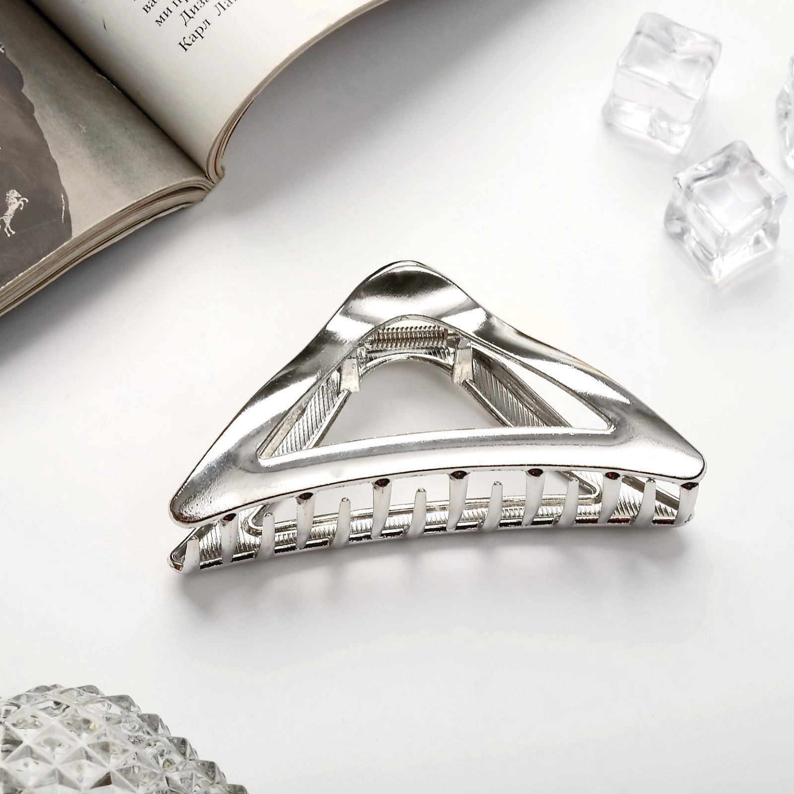 Крабик для волос "Глянец", треугольник, 10x4.5 см, серебро, 10x4.5 см., Китай
