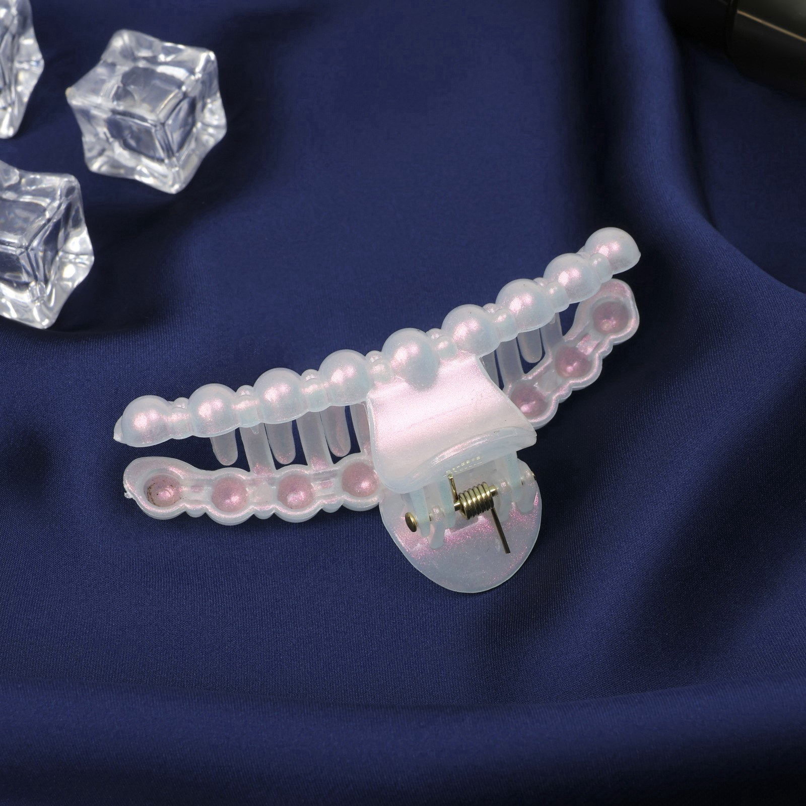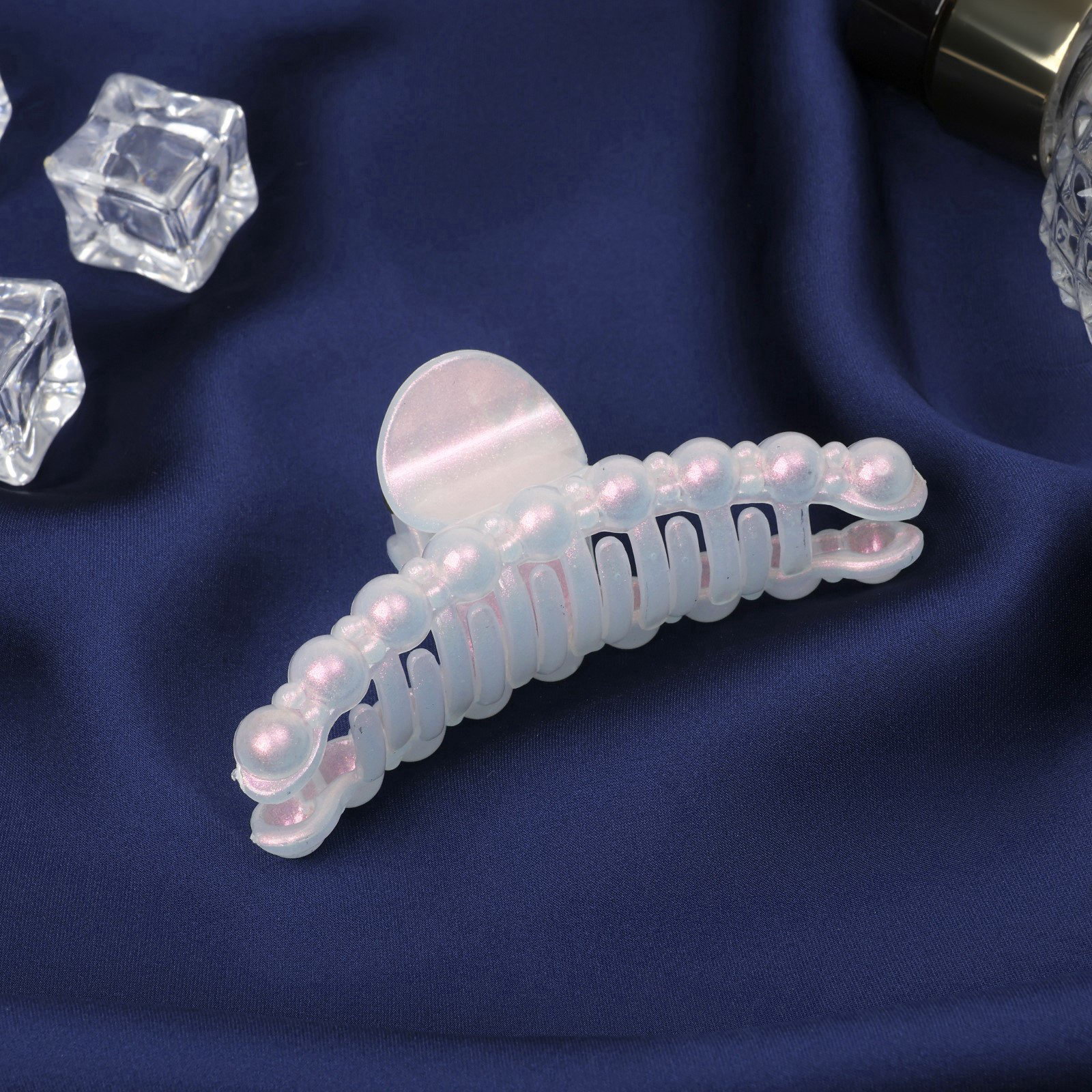 Крабик для волос "Глянец", бусинка, 8 см, белый, 8 см., Китай