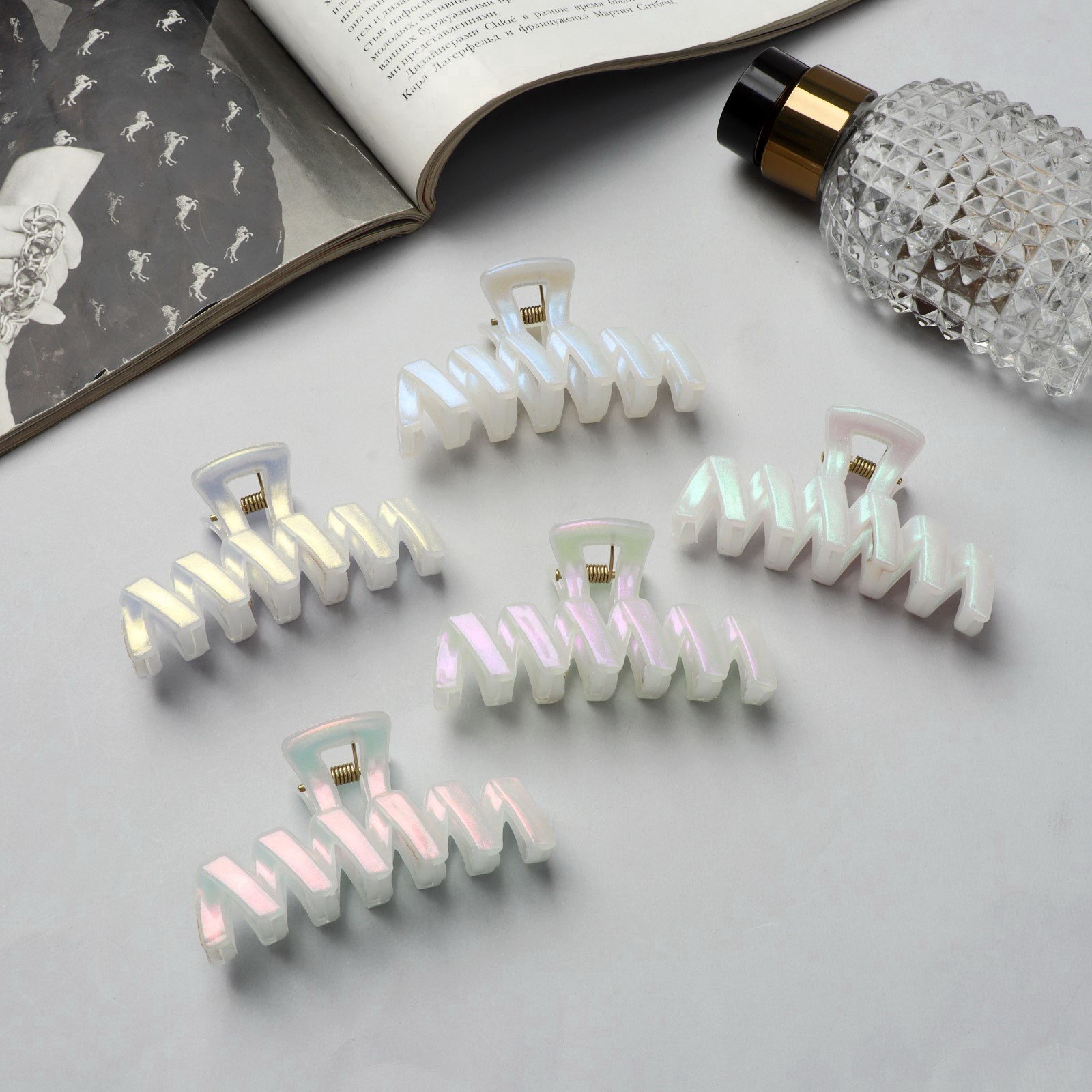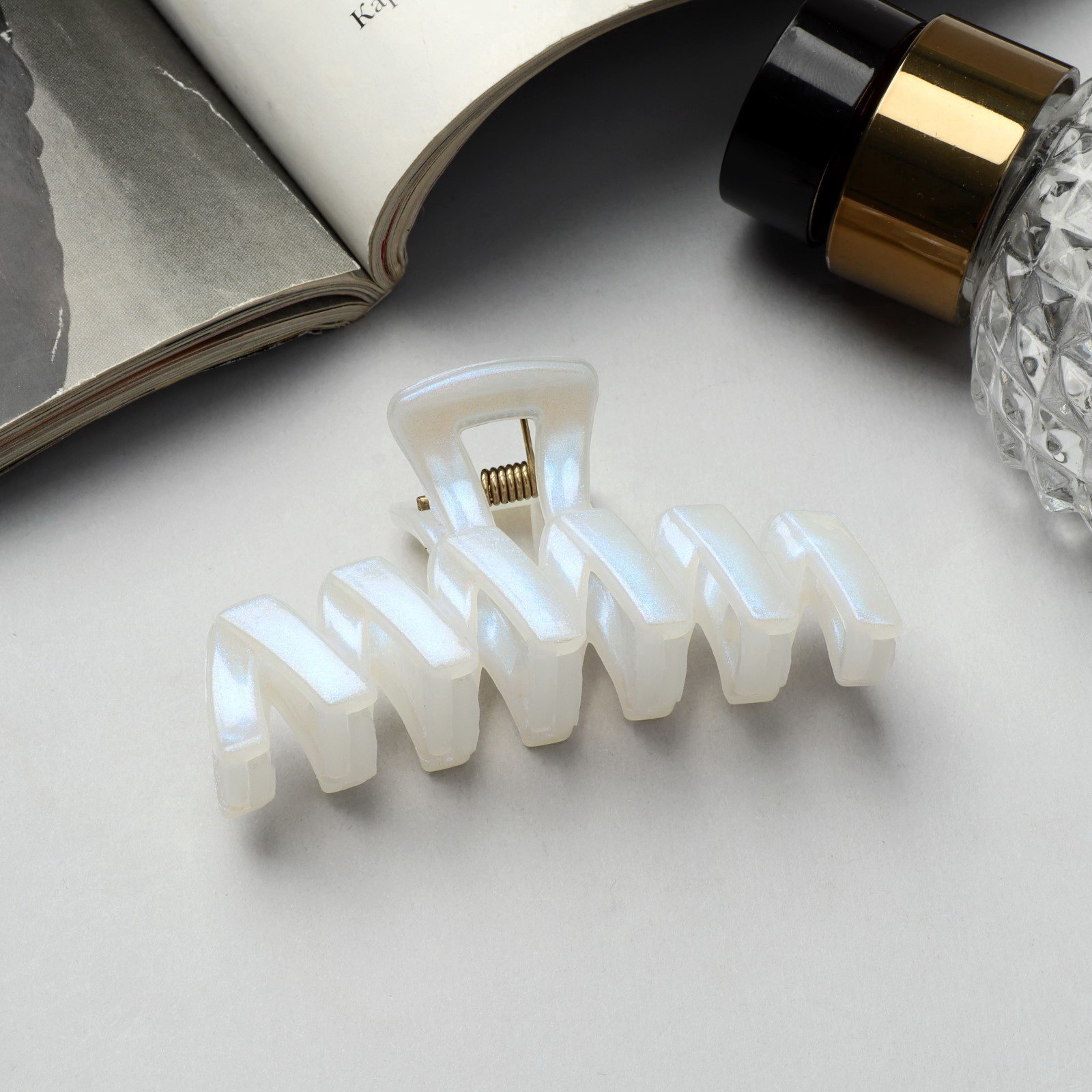 Крабик для волос "Жемчужный", зиг-заг, 7 см, белый, 7 см., Китай