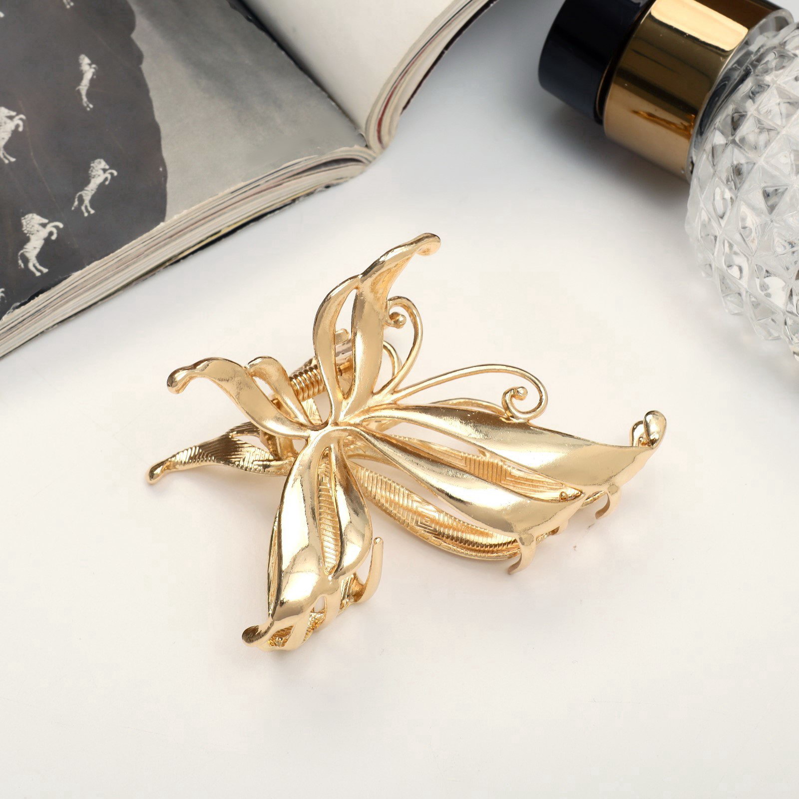 Крабик для волос "Анисия", бабочка, 6.5 см, золото, 6.5 см., Queen fair, Китай