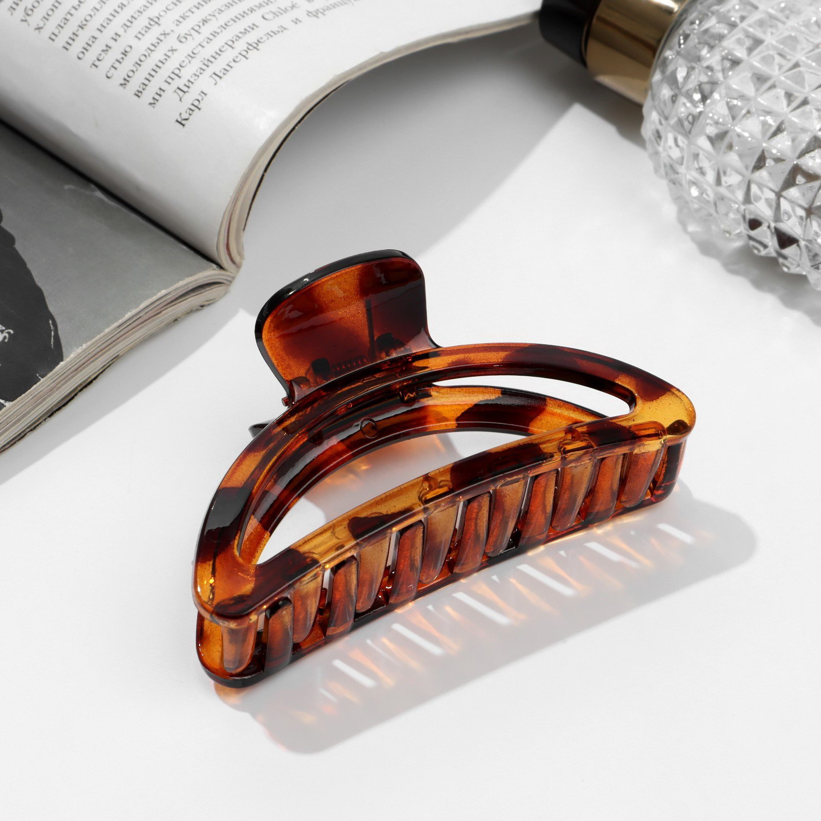 Крабик для волос "Леопардовый", овал, 9 см, коричневый, Китай