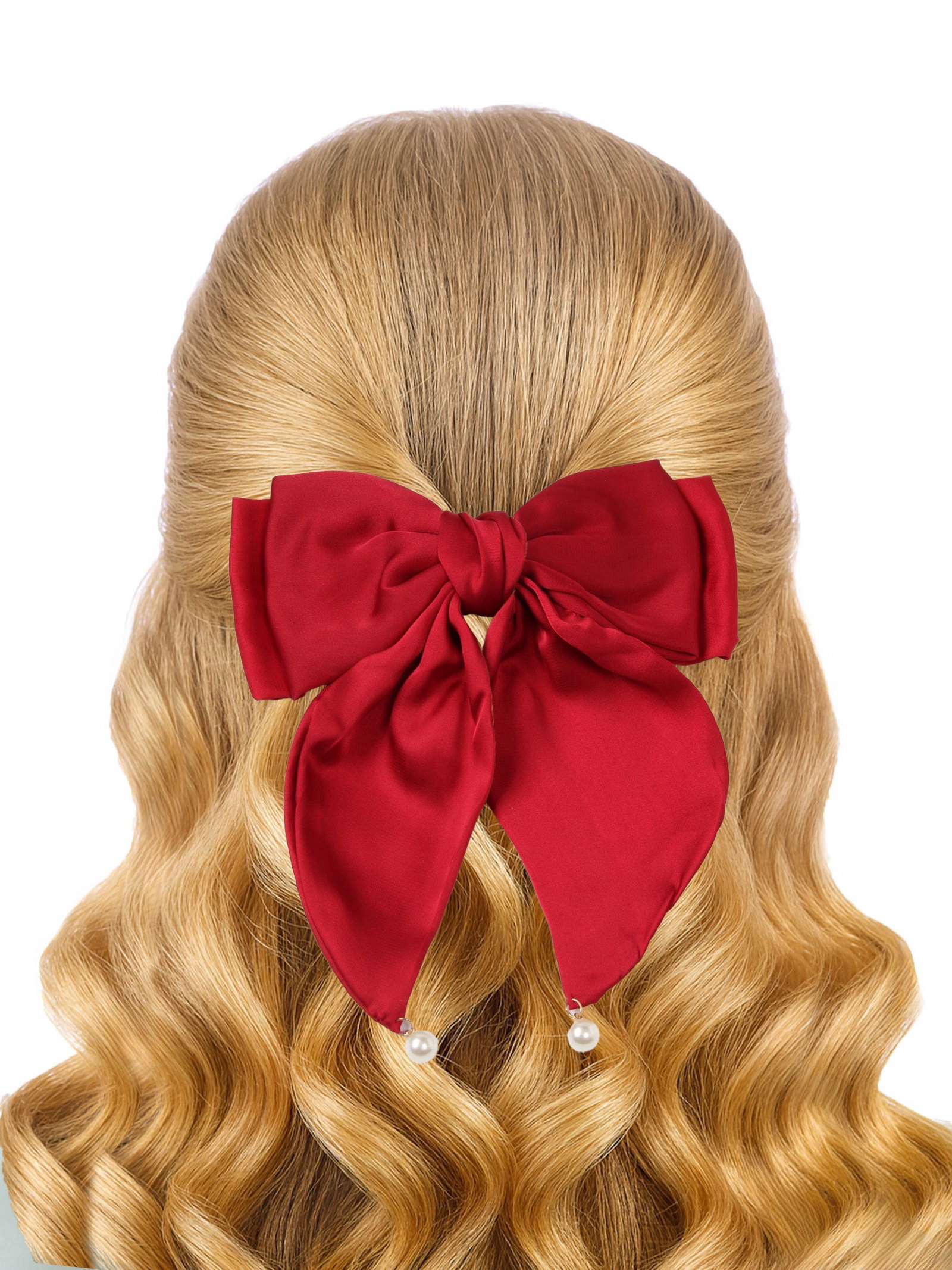 Заколка - автомат для волос "Джулия", двойной бант, 18x15 см, красная, 15x18 см., QF, Китай