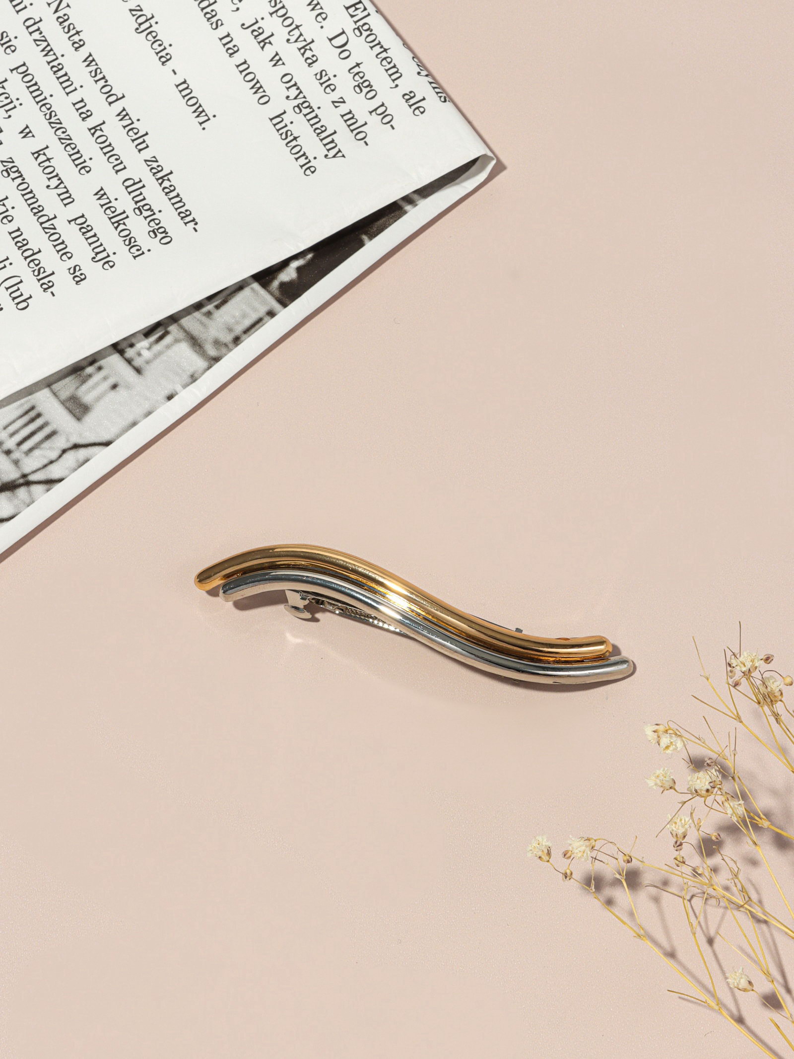 Заколка-автомат для волос "Андри" волна, 8.5 см, серебристо-золотой, 8.5 см., QF, Китай