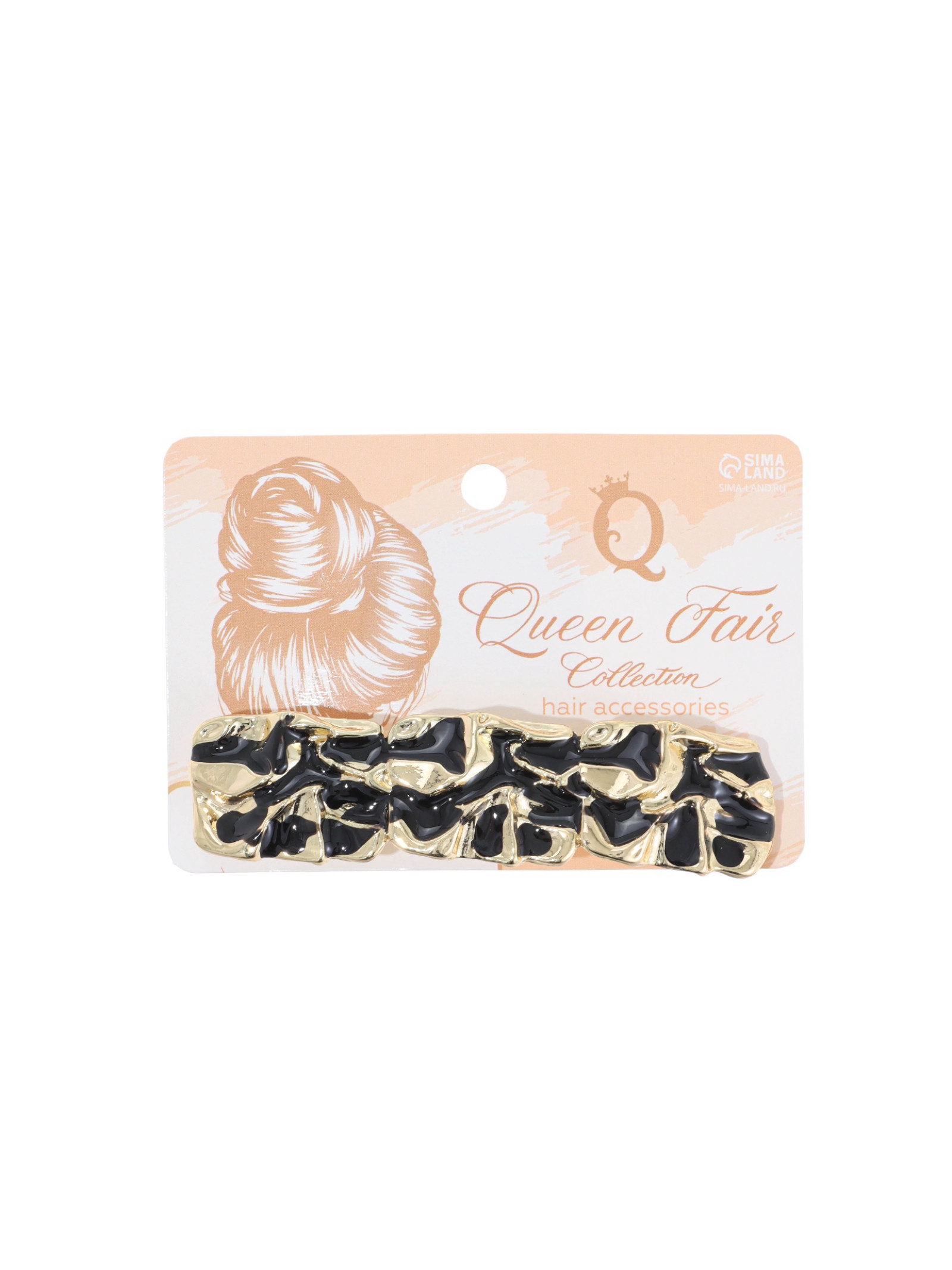Заколка - автомат для волос "Филомена", прямой, 9 см, чёрно-золотая, 9 см., QF, Китай