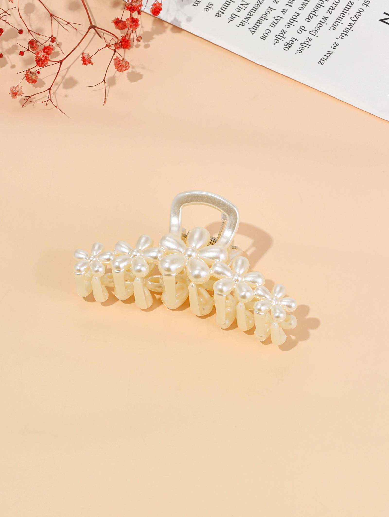Крабик для волос "Эмилин", цветы, 9.5 см, белый, 9.5 см., Китай