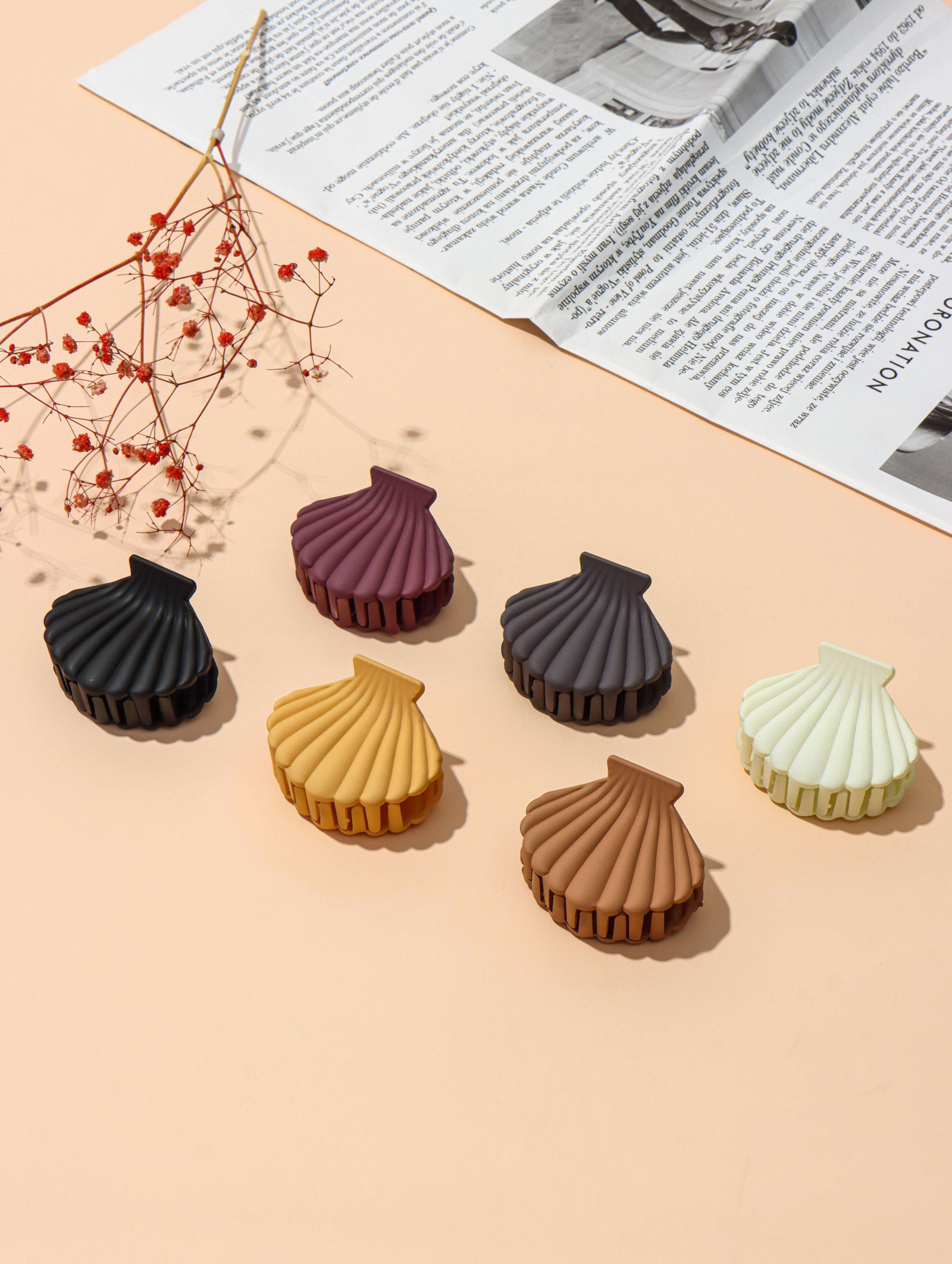 Крабик для волос "Артемида" ракушка, 6x4.5 см, матовый, МИКС, 4.5x6 см., Китай