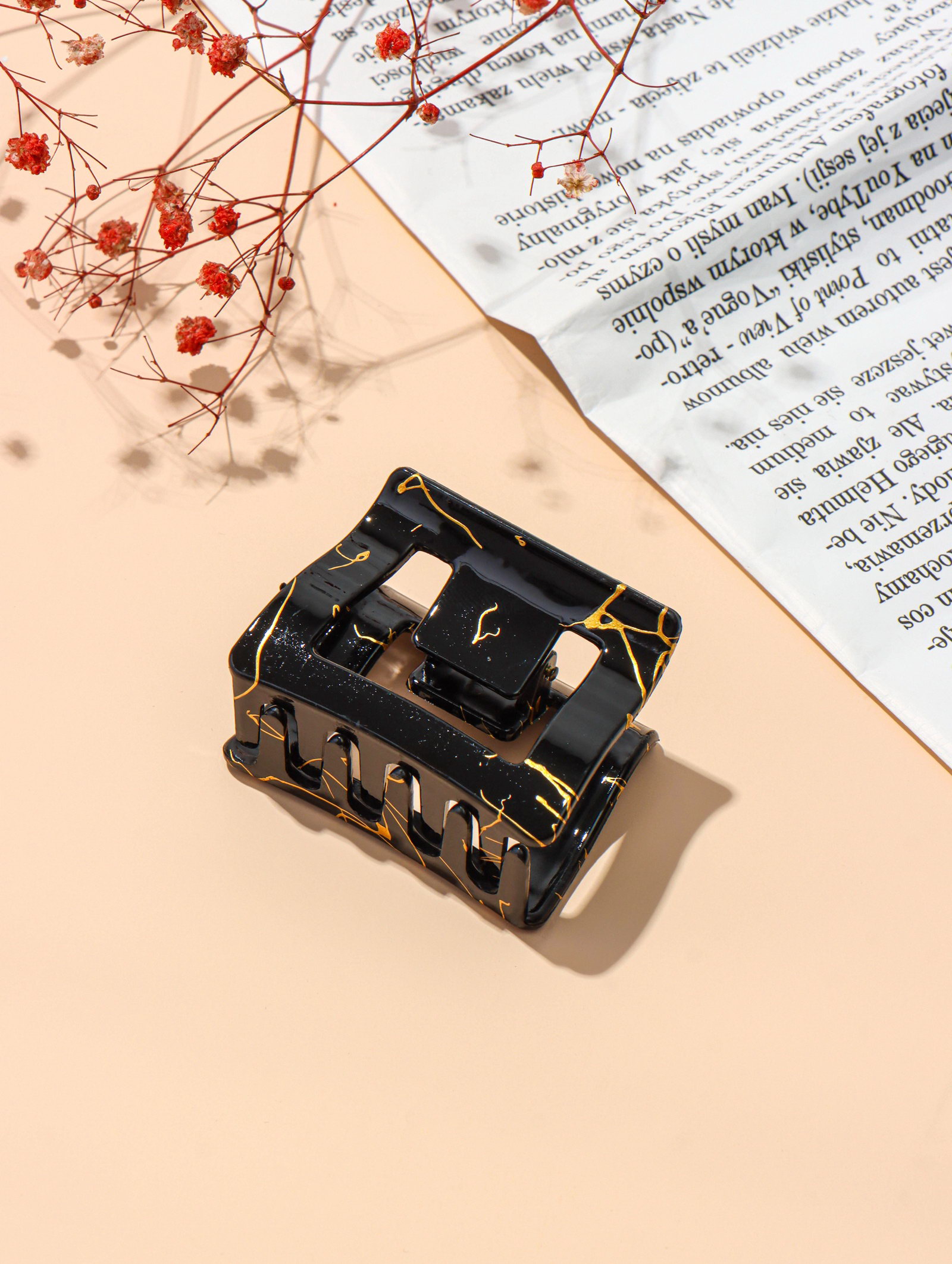 Крабик для волос "Классик" прямой, 5.5x4 см, чёрно-золотой, 4x5.5 см., Китай