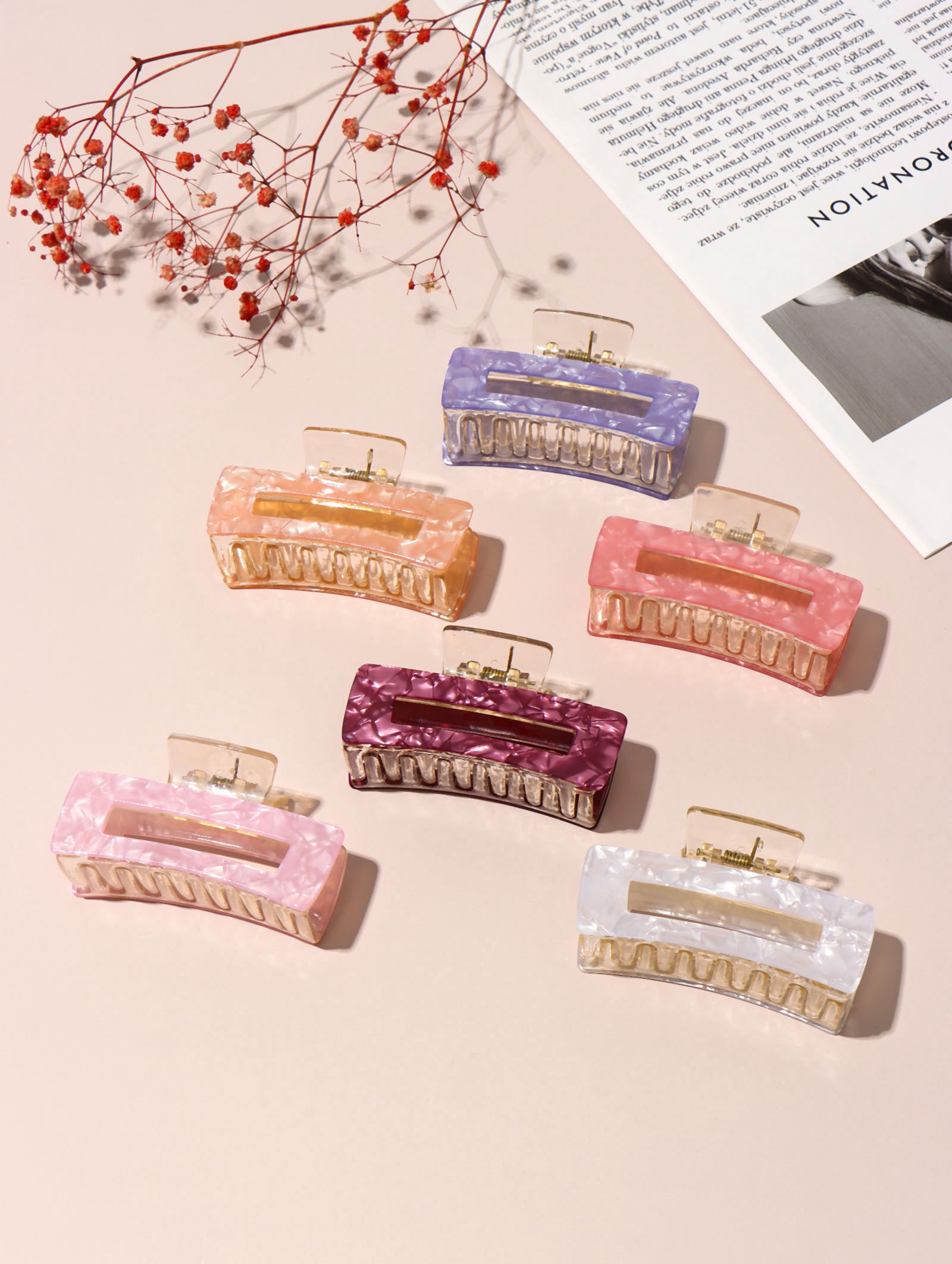 Крабик для волос "Кимберли" прямой, 8x4 см, МИКС, 4x8 см., Китай