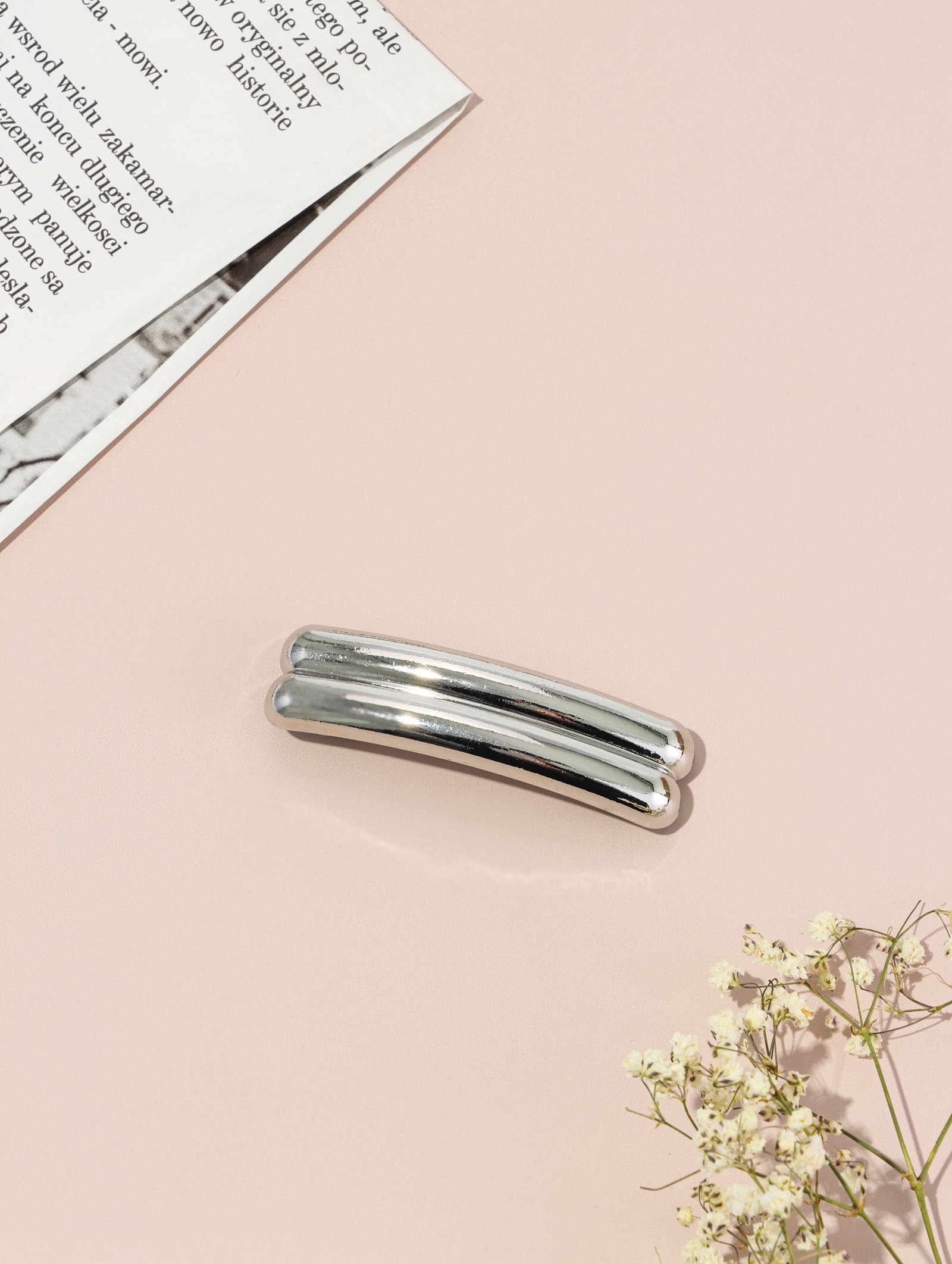 Заколка - автомат для волос "Рокси" полосы, 7 см, серебро, 2x7 см., QF, Китай