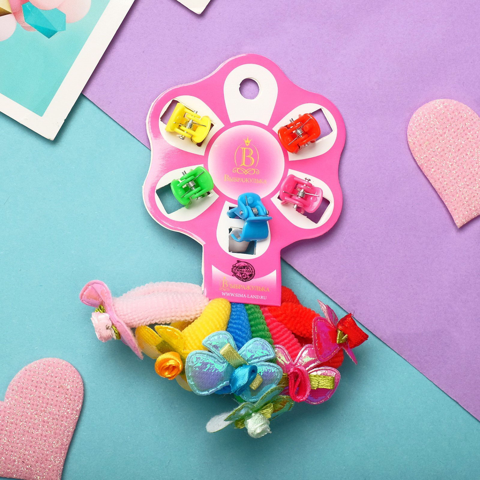 Набор для волос "Цветик", 5 крабиков, 6 резинок, бантик перелив, МИКС, Выбражулька, Китай