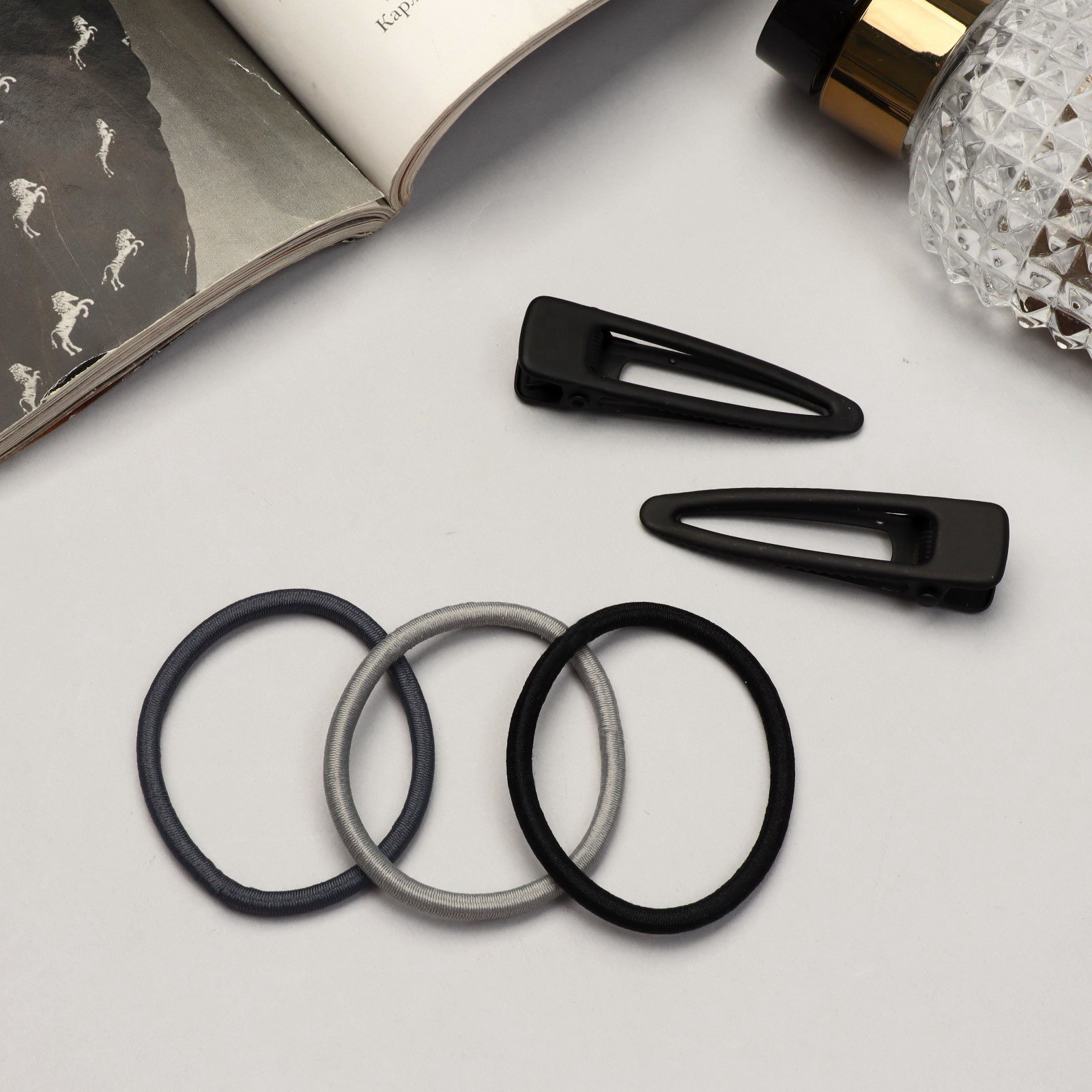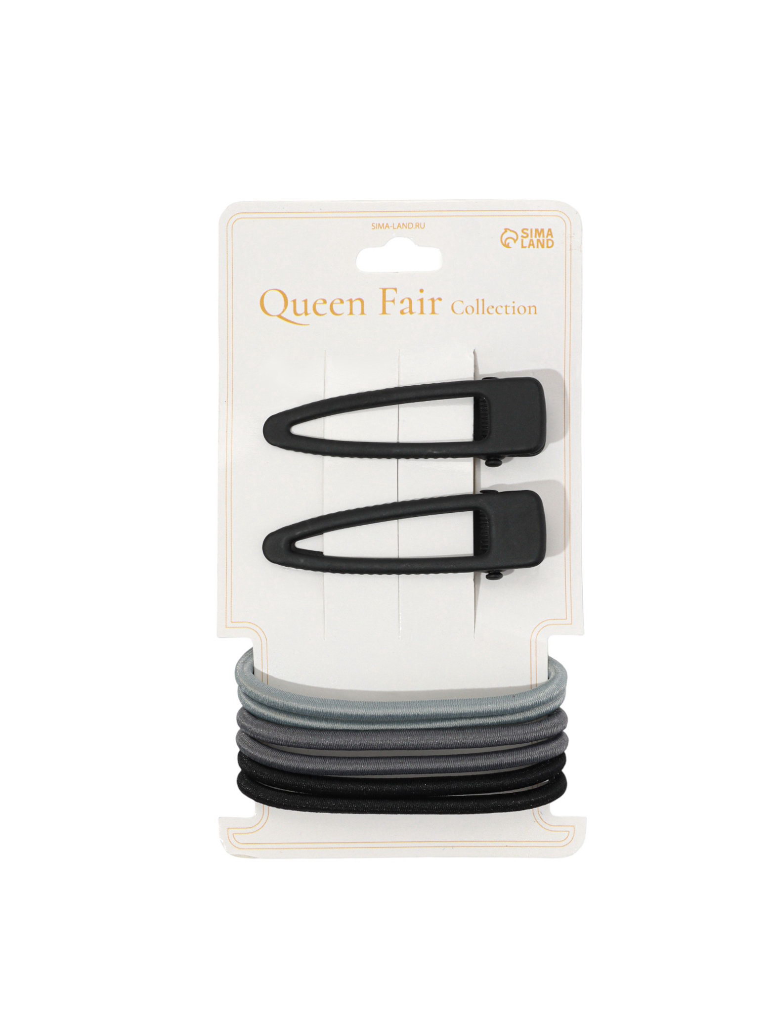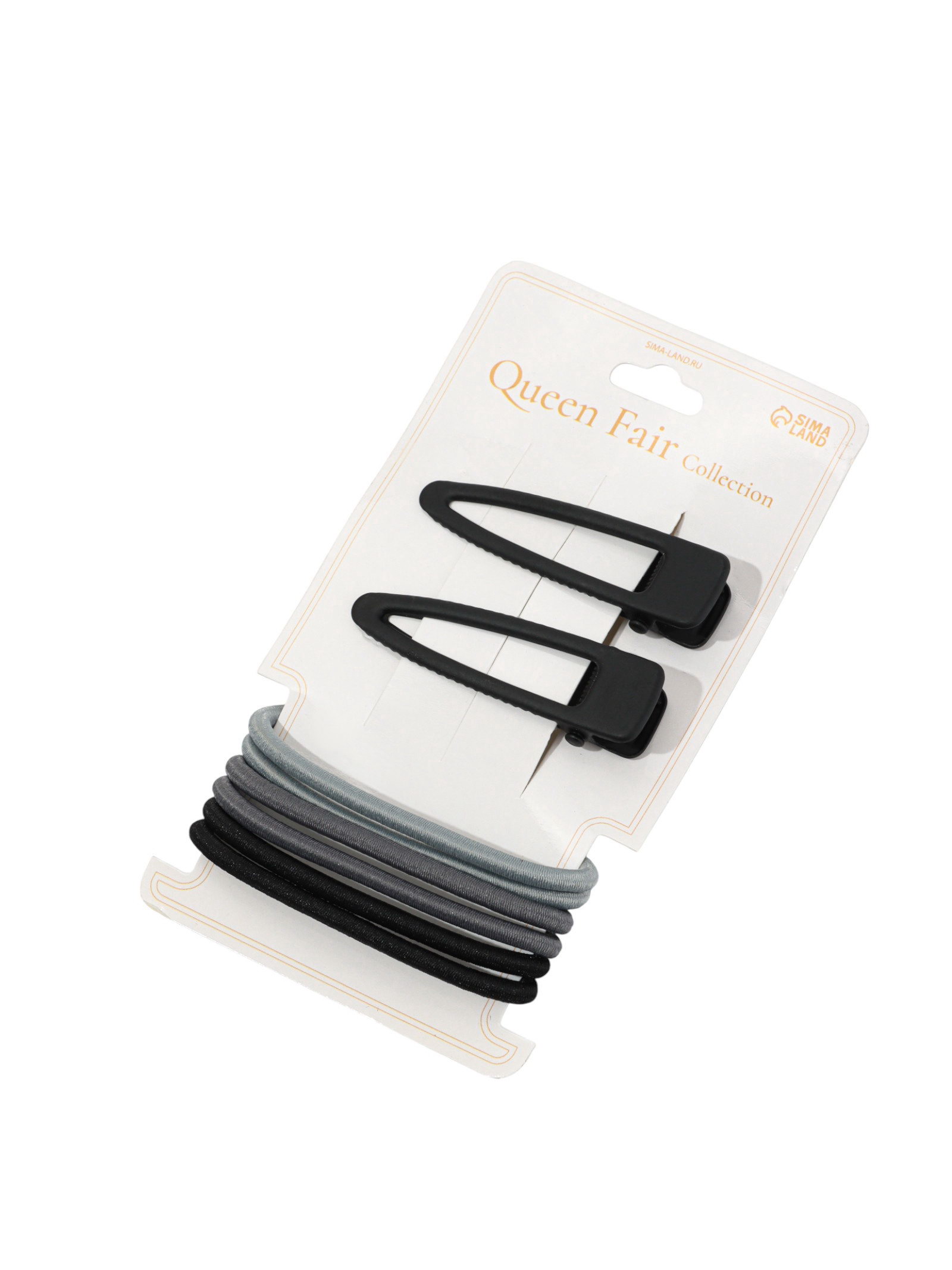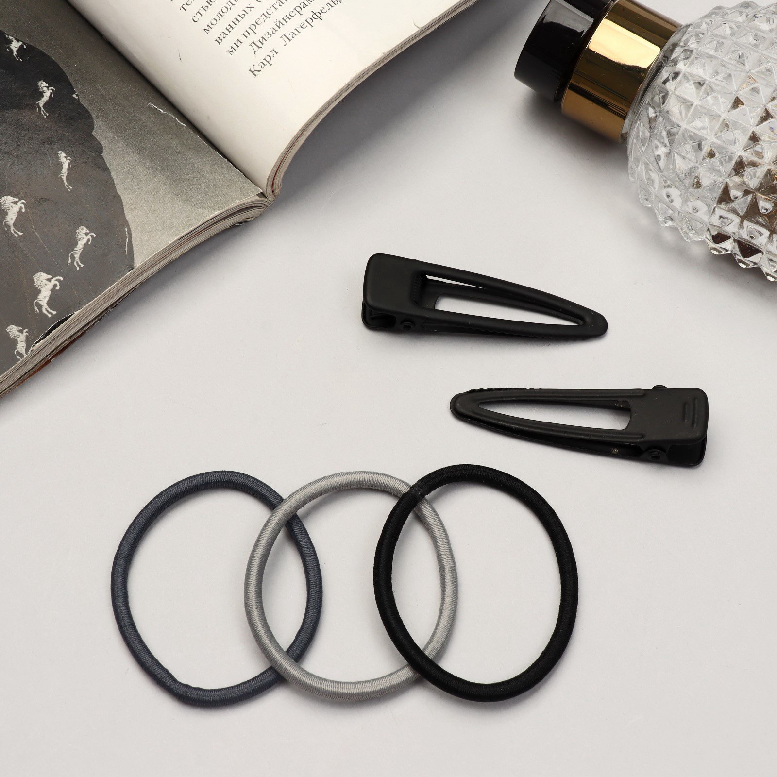 Набор для волос "Лиора", 6 резинок, 2 заколки 5 см, классика, чёрно-серый, QF, Китай