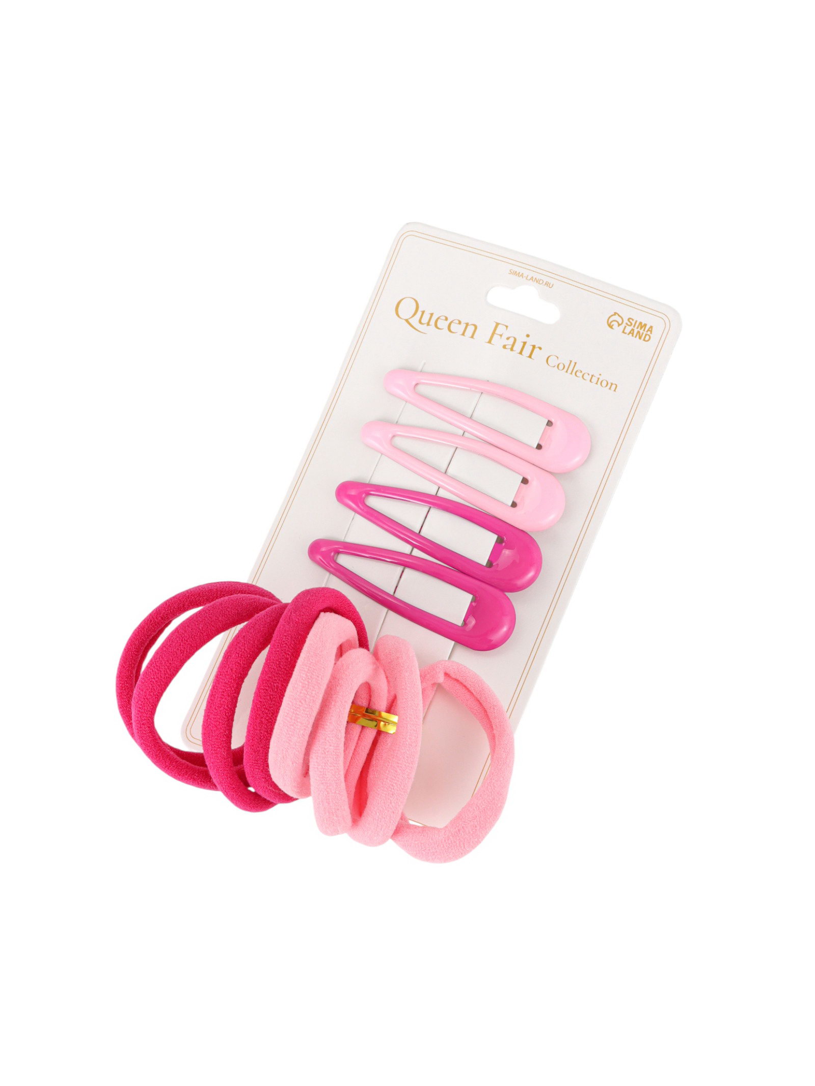 Набор для волос "Мира", 12 шт.: 4 невидимки 5 см, 8 резинок 3.5 см, розовый, 3.5 см., QF, Китай