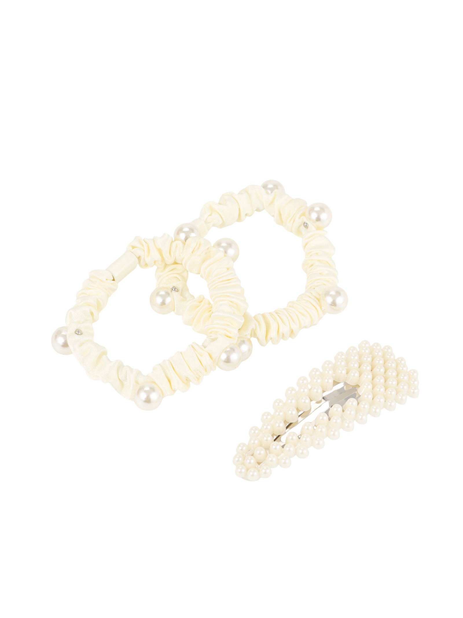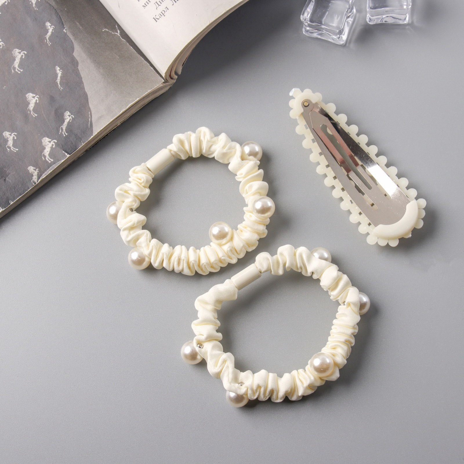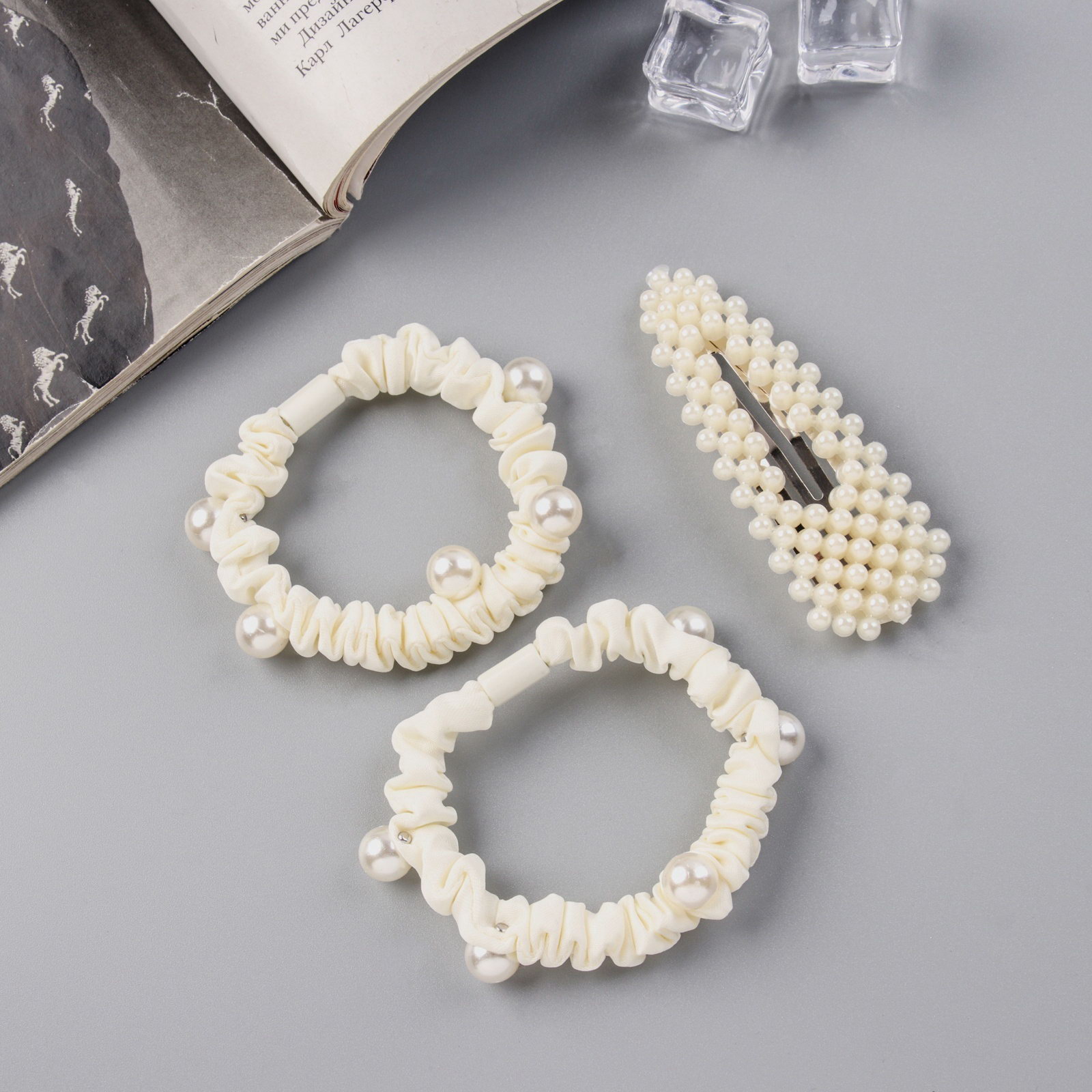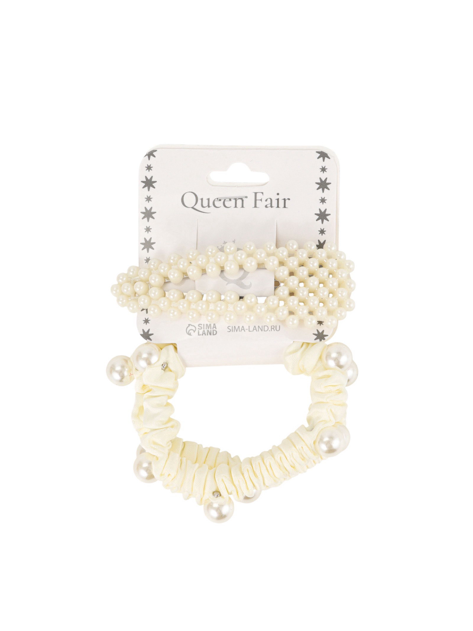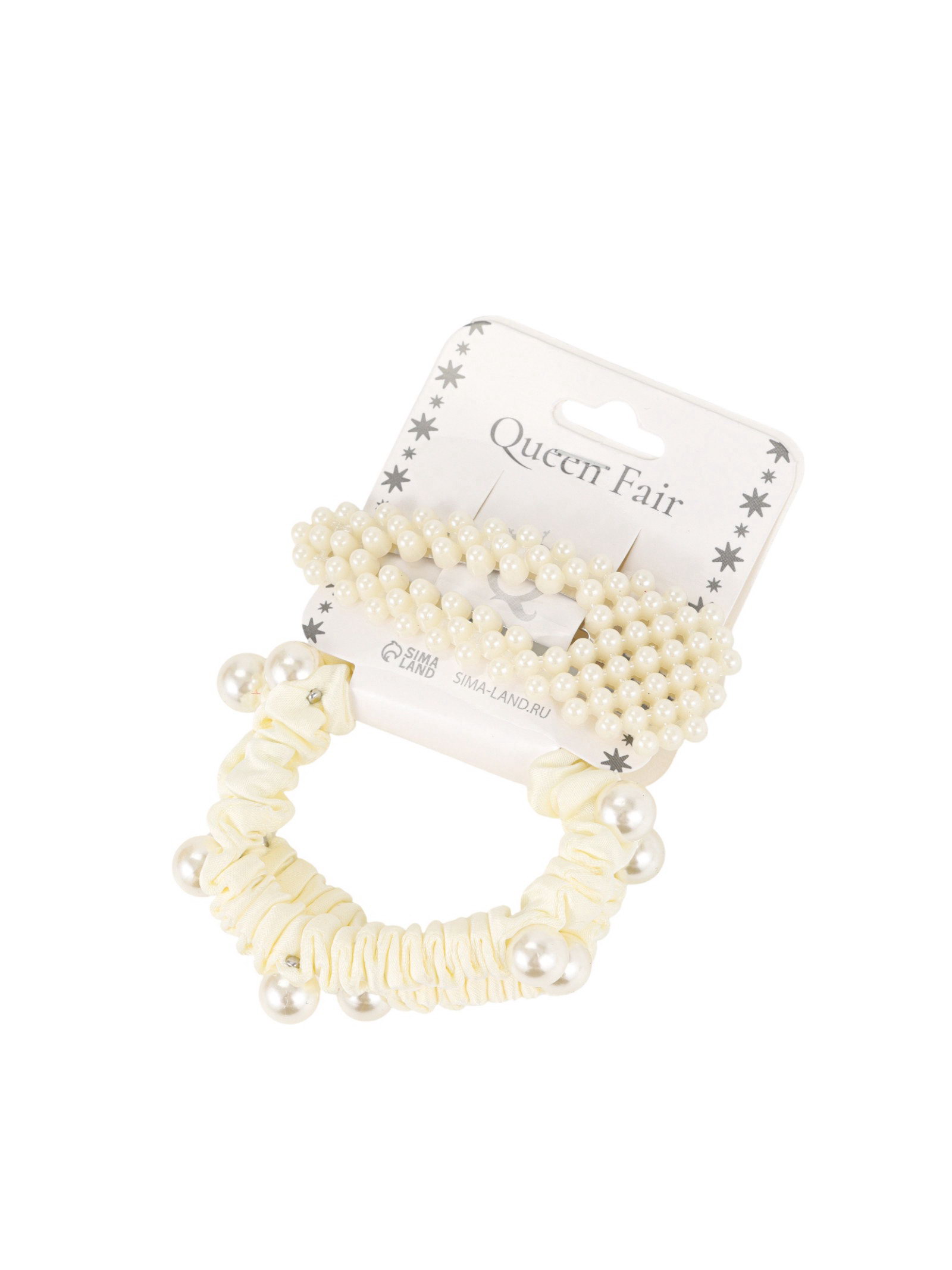 Набор для волос "Касандра", 2 резинки 5 см, заколка 7 см, молочный, QF, Китай