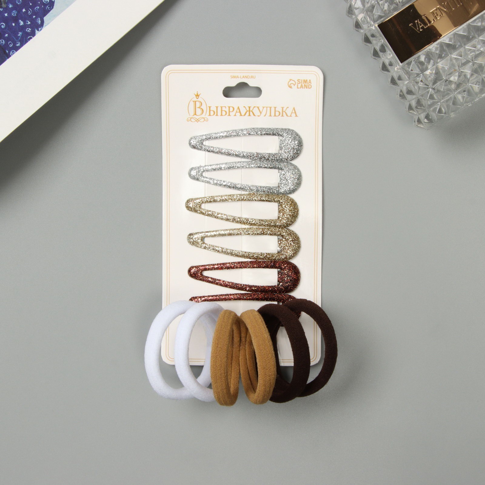 Набор для волос "Гелена", 6 резинок 3.5 см, 6 заколок 5 см, Выбражулька, Китай