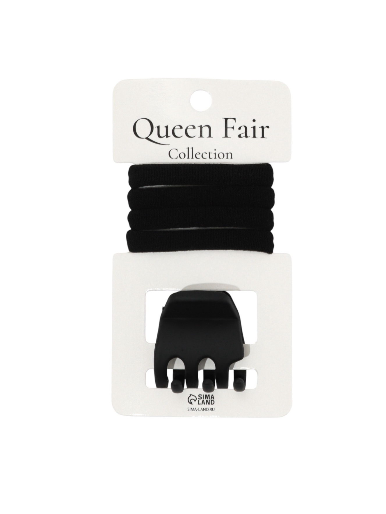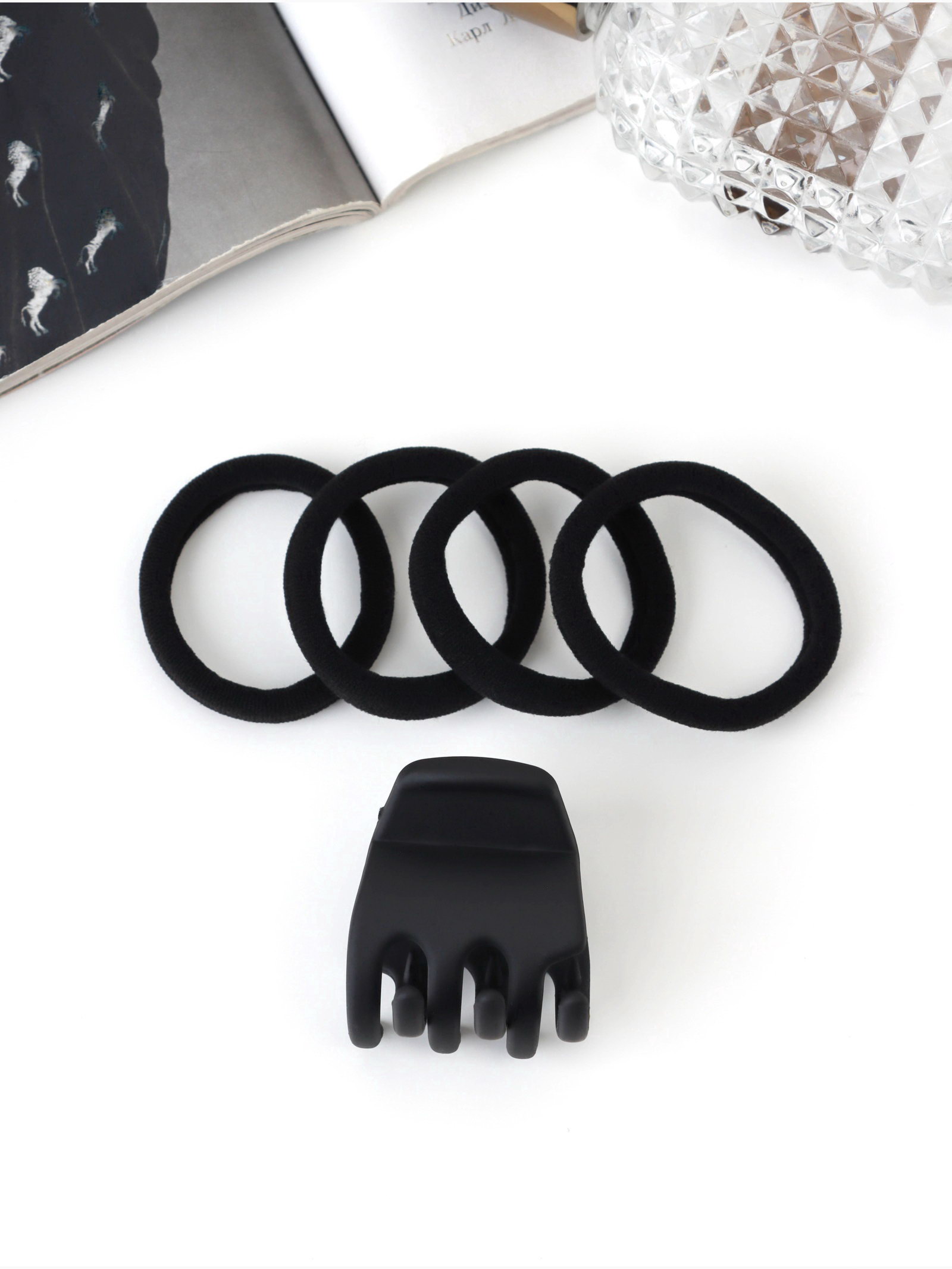 Набор для волос "Вивьен", 4 резинки 5.5 см, краб 3 см, зубья, чёрный, QF, Китай