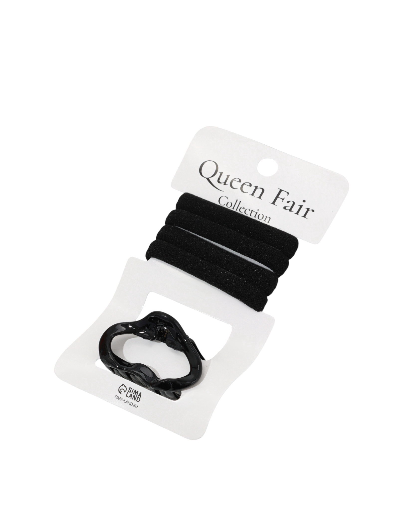 Набор для волос "Вивьен", 4 резинки 5.5 см, краб 4.5 см, волна, чёрный, QF, Китай