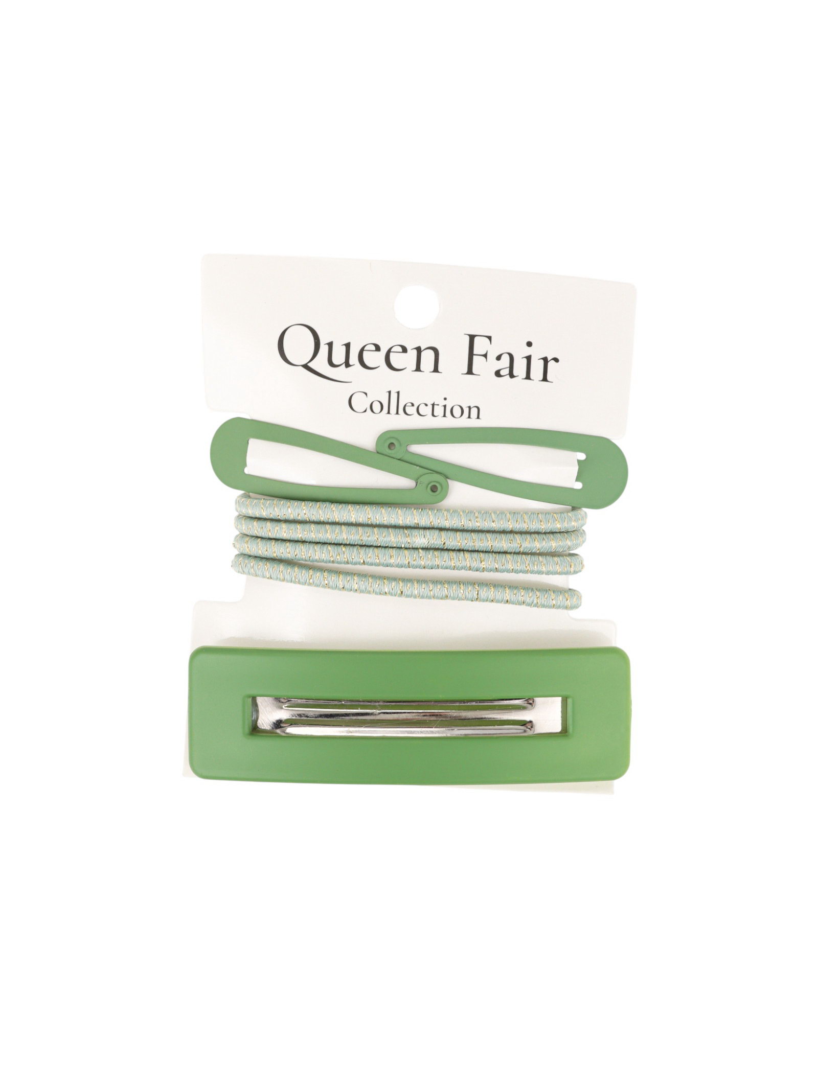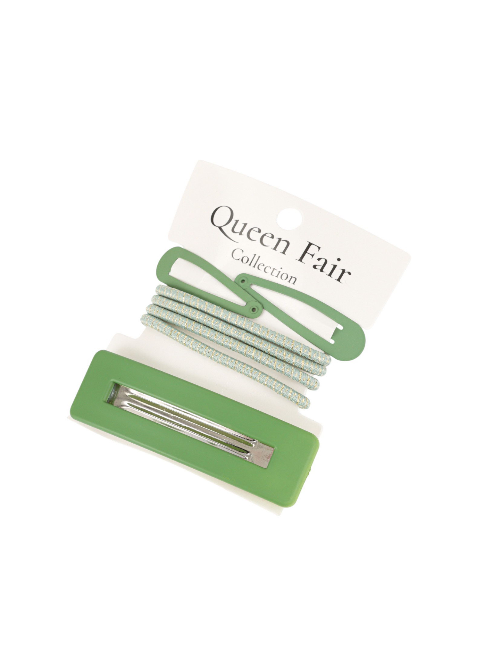 Набор для волос "Элери", 4 резинки 6.5 см, заколка - автомат 8 см, 2 заколки 4.5 см, зелёный, 6.5 см., QF, Китай