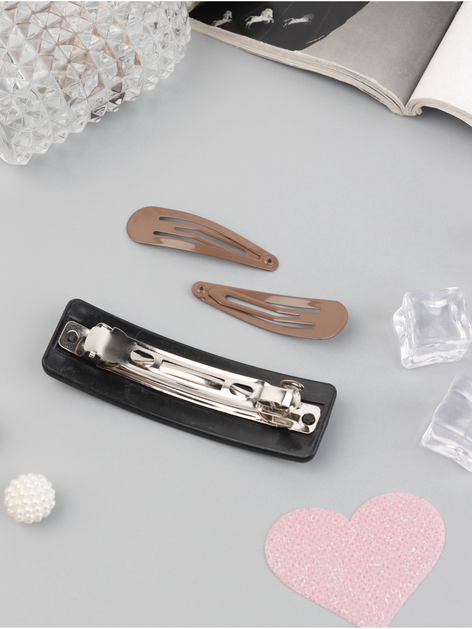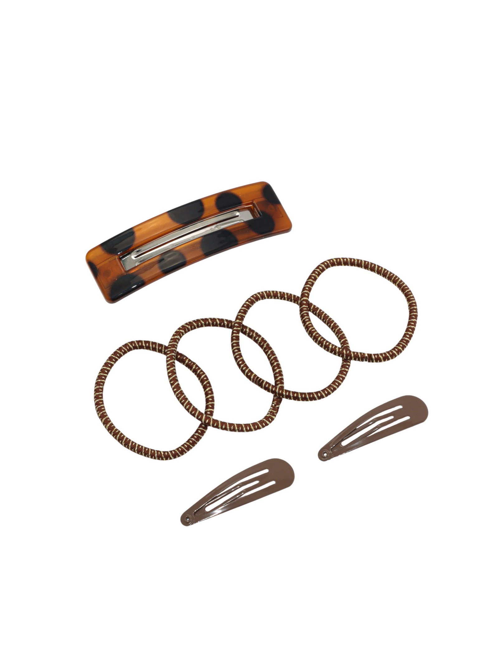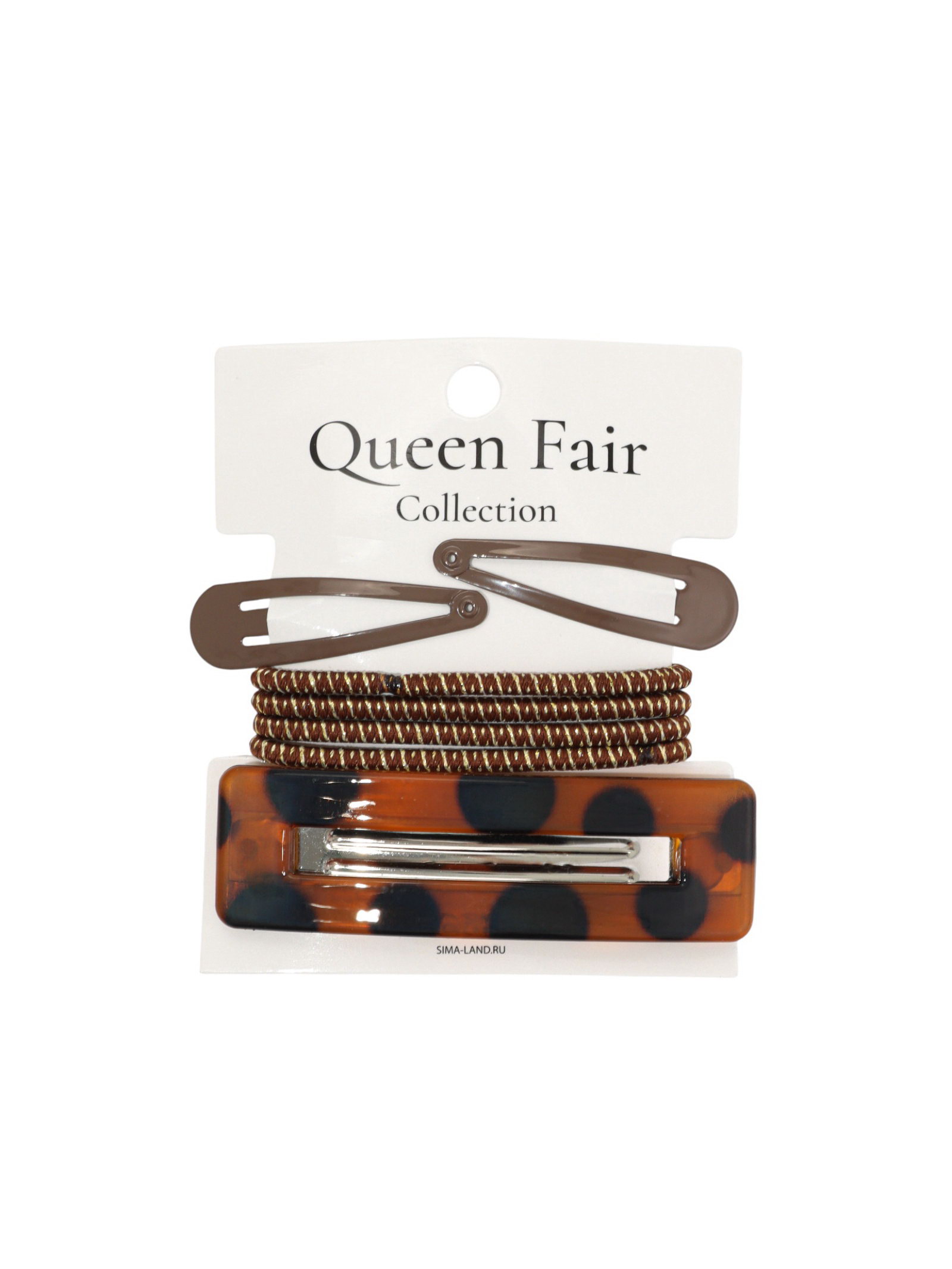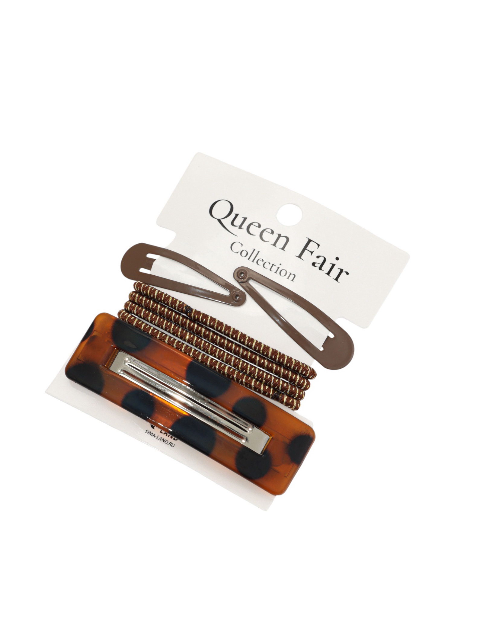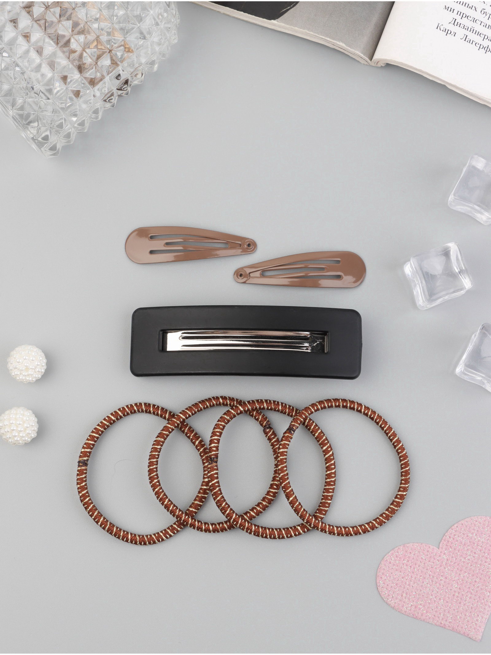 Набор для волос "Флоренс лео", 4 резинки 6.5 см, заколка - автомат МИКС 8 см, 2 заколки 4.5 см, коричневый, QF, Китай