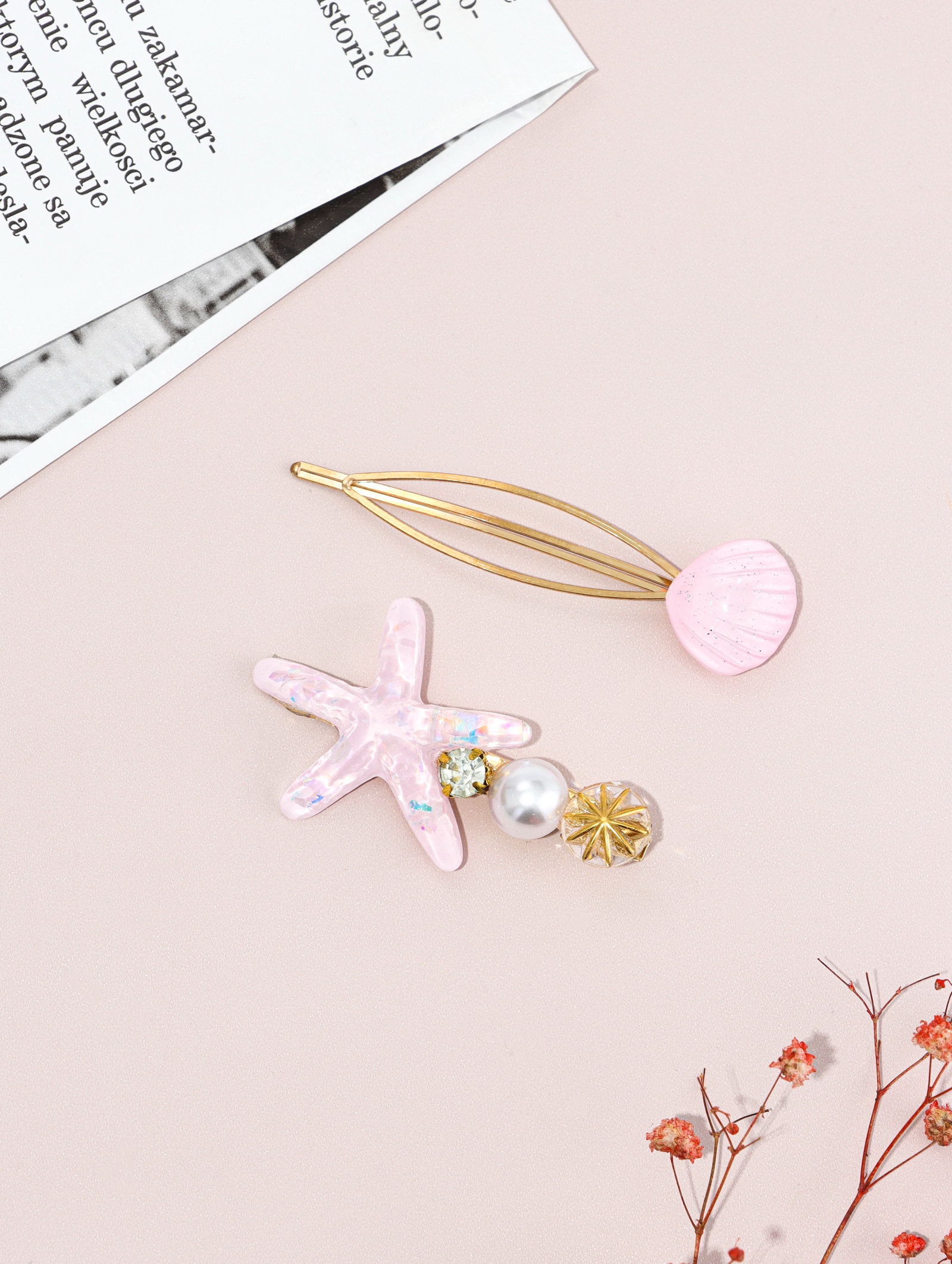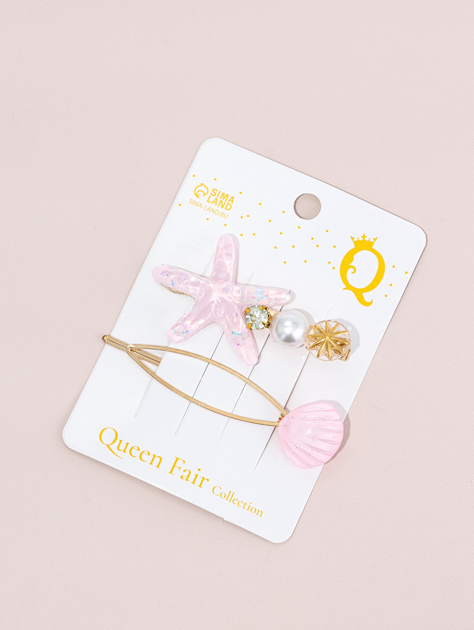 Набор для волос "Морская звезда", 1 зажим, 1 невидимка, 7 см, розовый, 7 см., QF, Китай