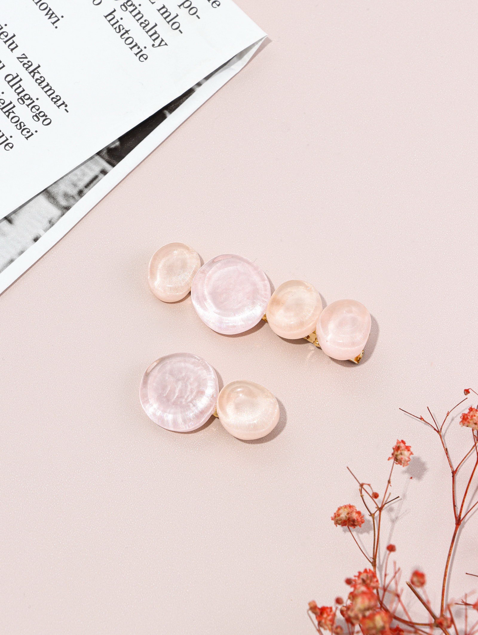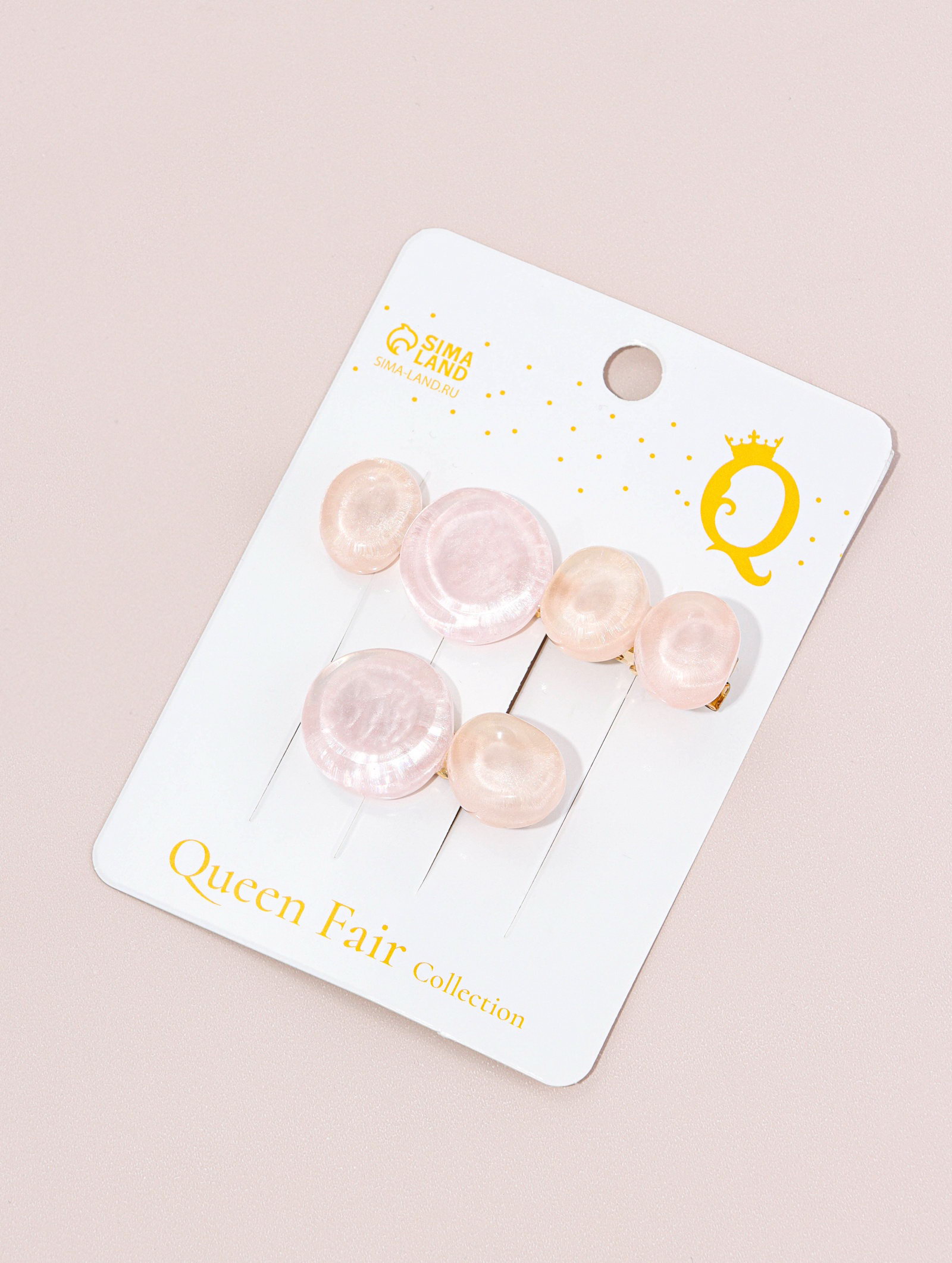 Зажимы для волос "Адель", набор 2 шт., 6.5 и 4 см, розовые, QF, Китай