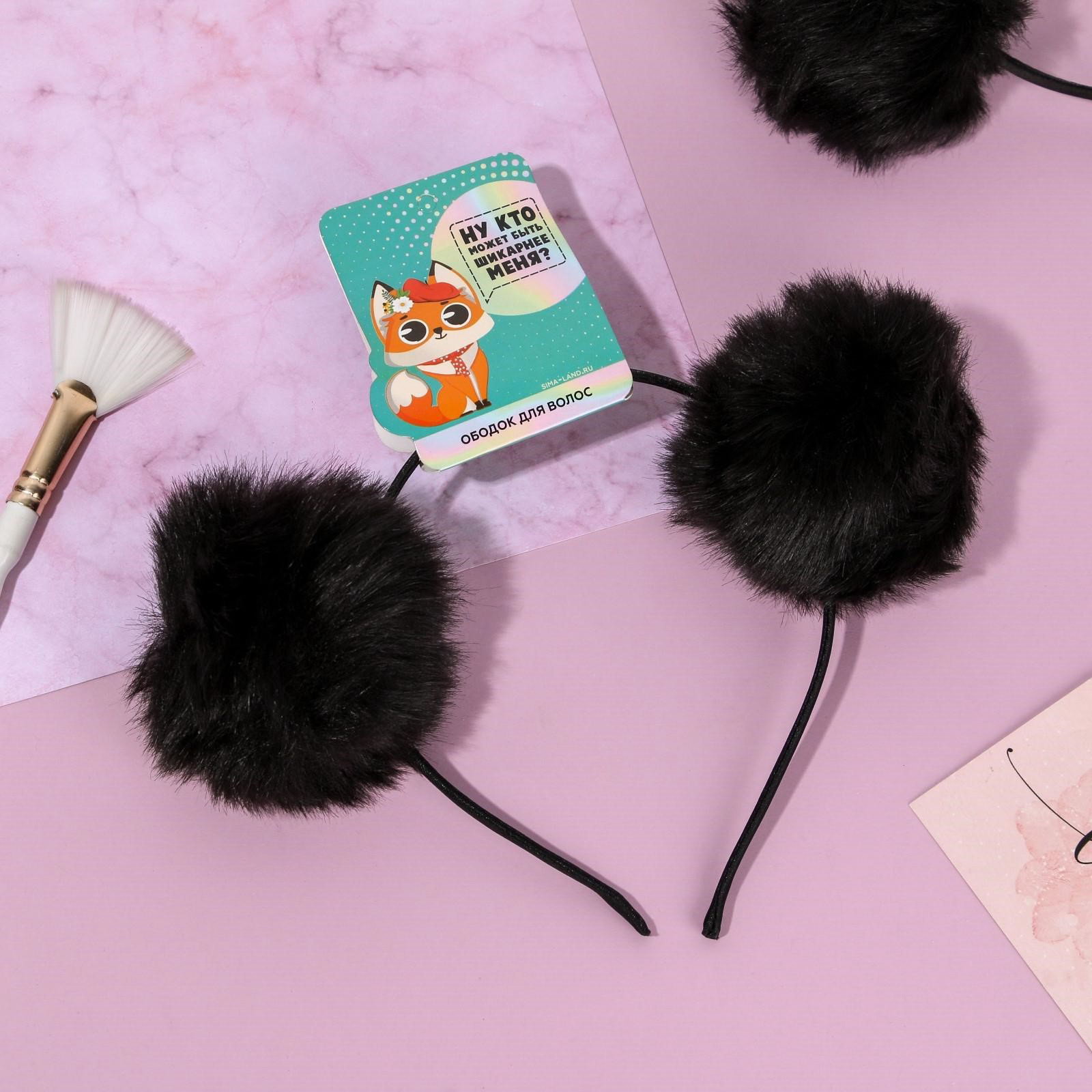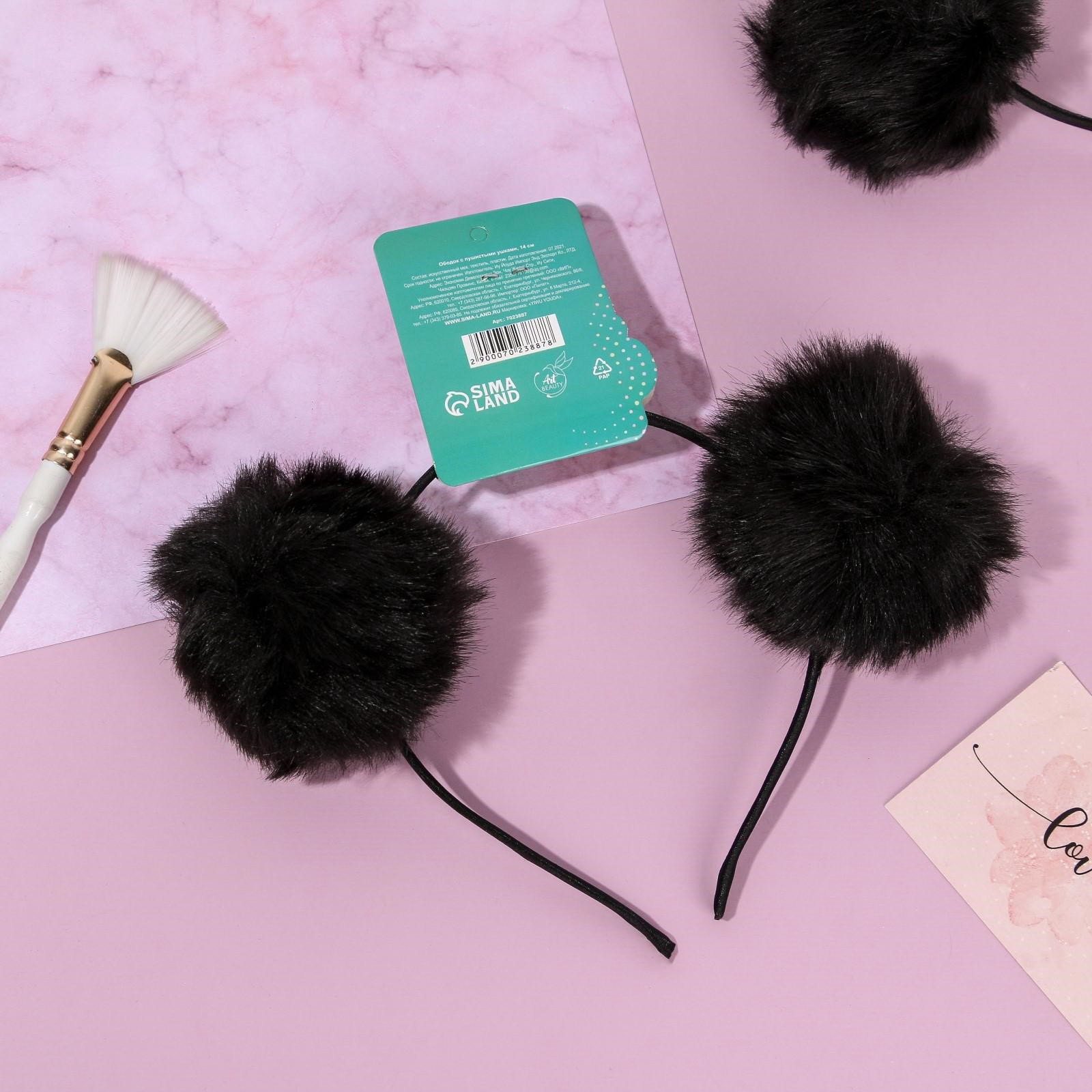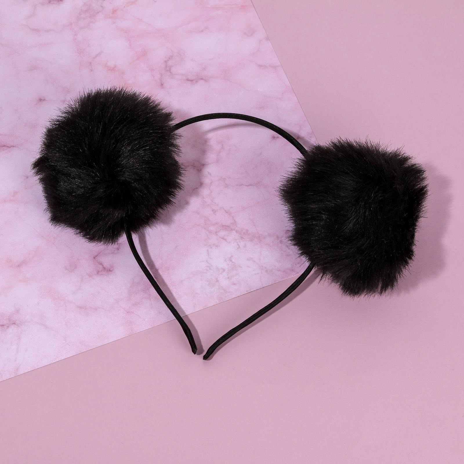 Ободок для волос с пушистыми ушками "Мишка", чёрный, 3x19x14.5 см., Art beauty, Китай