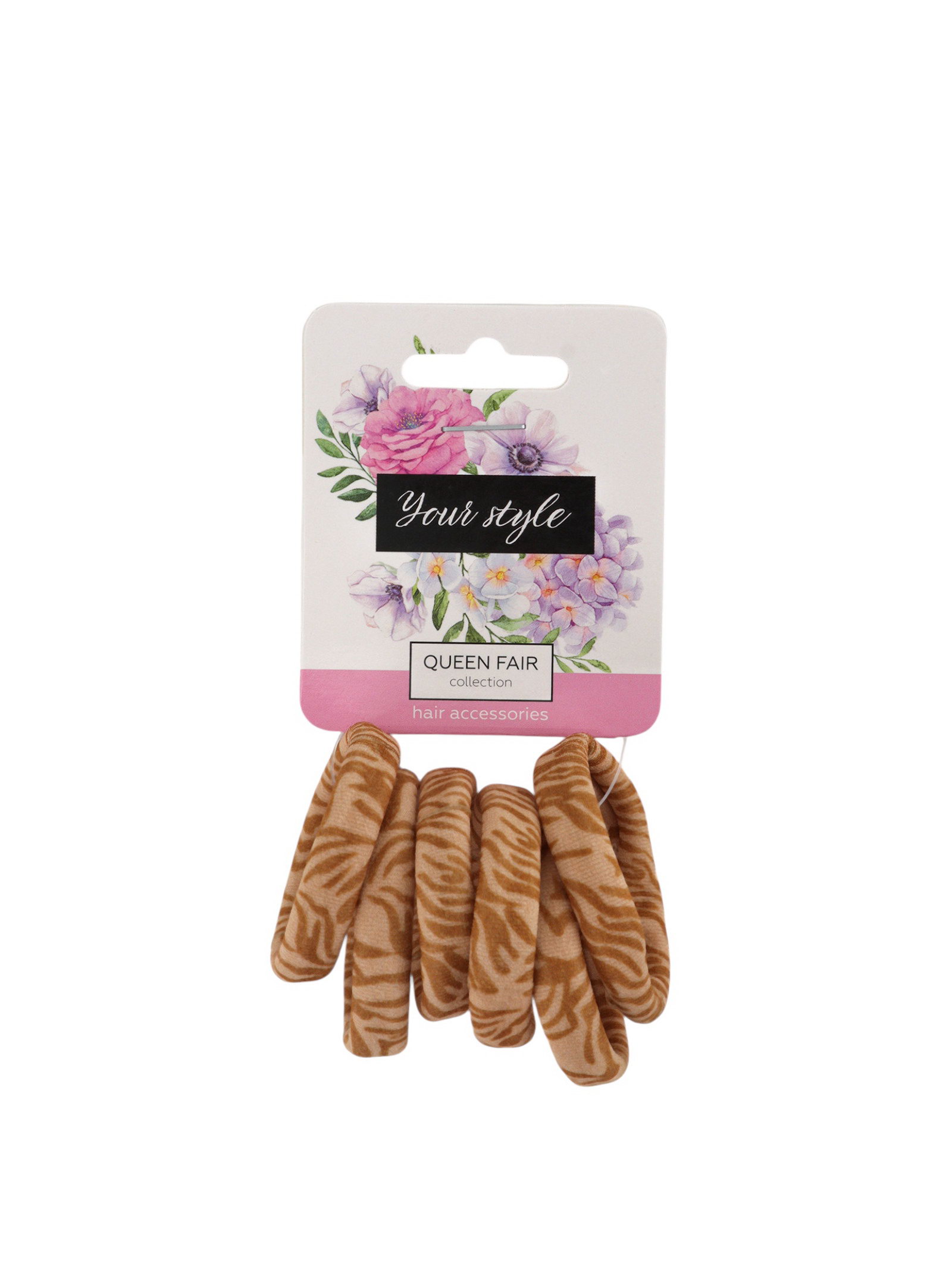 Резинки для волос "Спорт принт", набор 6 шт., полосы, 3.5 см, светло-коричневые, 3.5 см., Китай