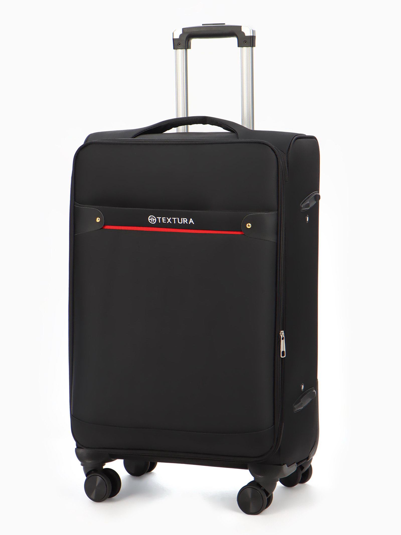 Чемодан 24",Текст,42*26*68,отд на молнии,1 нар/карм, увелич,код замок,4 колеса, черный, 26x42x68 см., TEXTURA, Китай