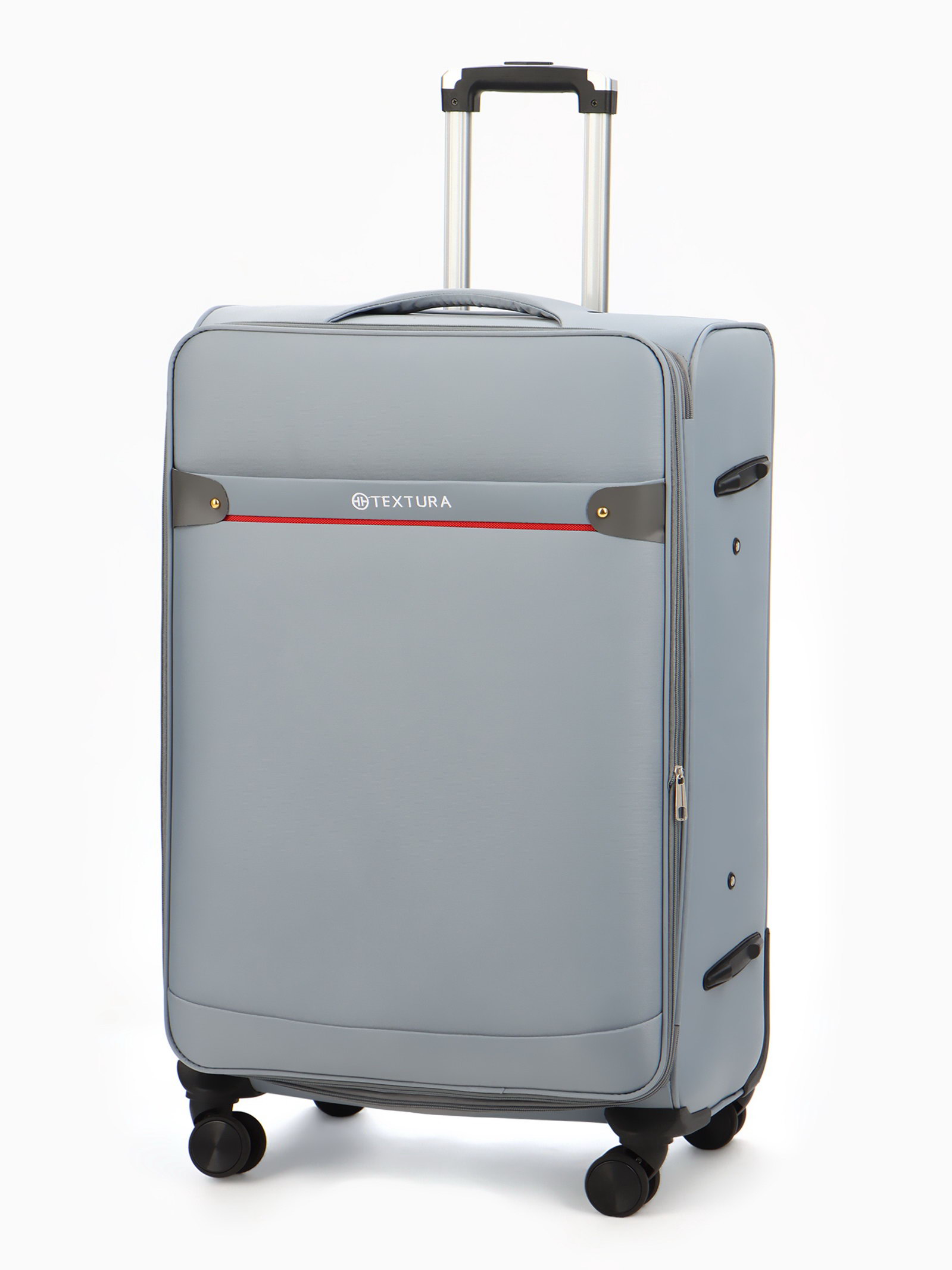 Чемодан на колёсах 74 л, кодовый замок, с увеличением, наружный карман, 42x26x68 см, 24", серый, 26x42x68 см., TEXTURA, Китай