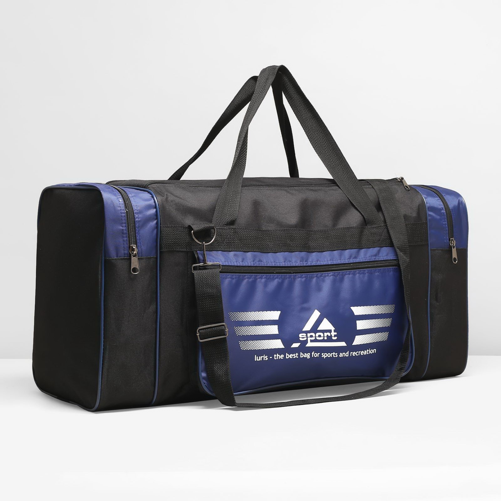Сумка дорожная на молнии, 3 наружных кармана, длинный ремень, цвет чёрный/синий, 27x70x34 см., Luris, Россия