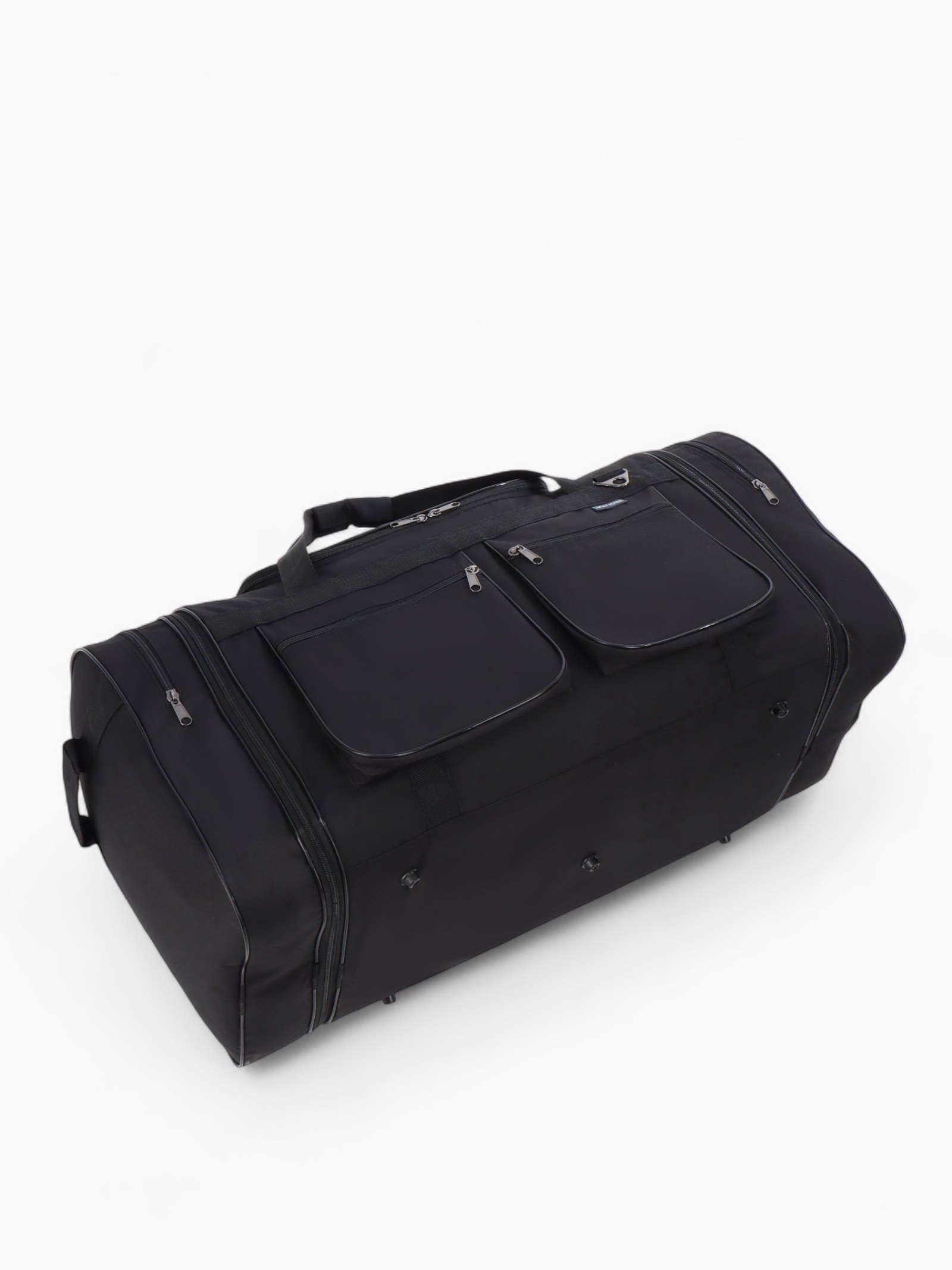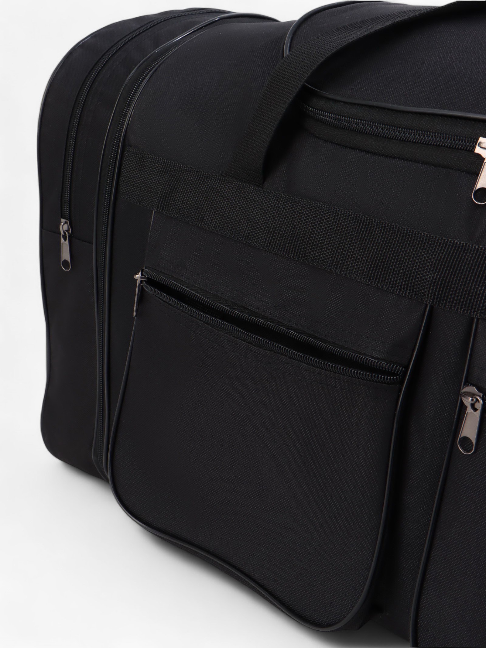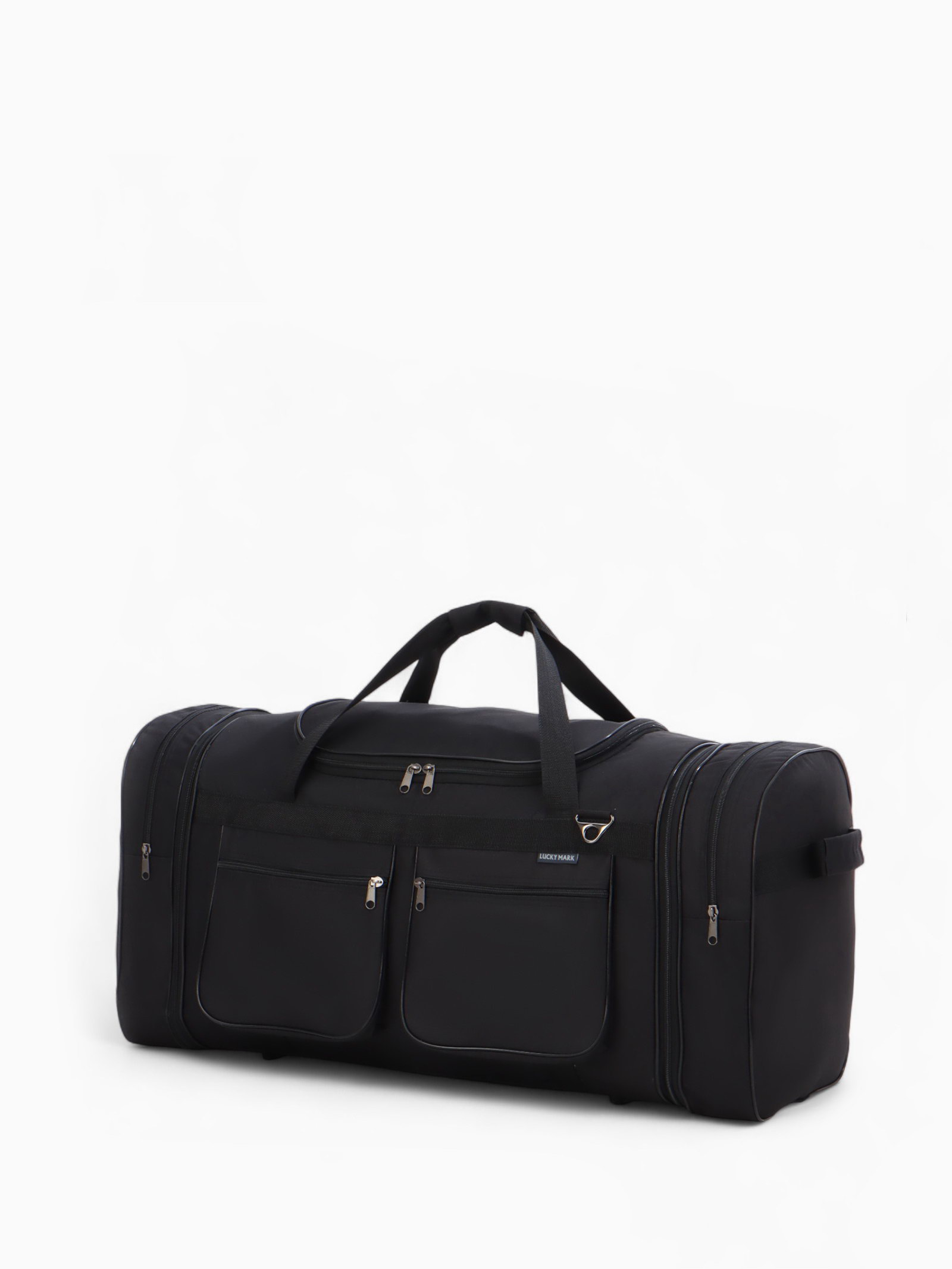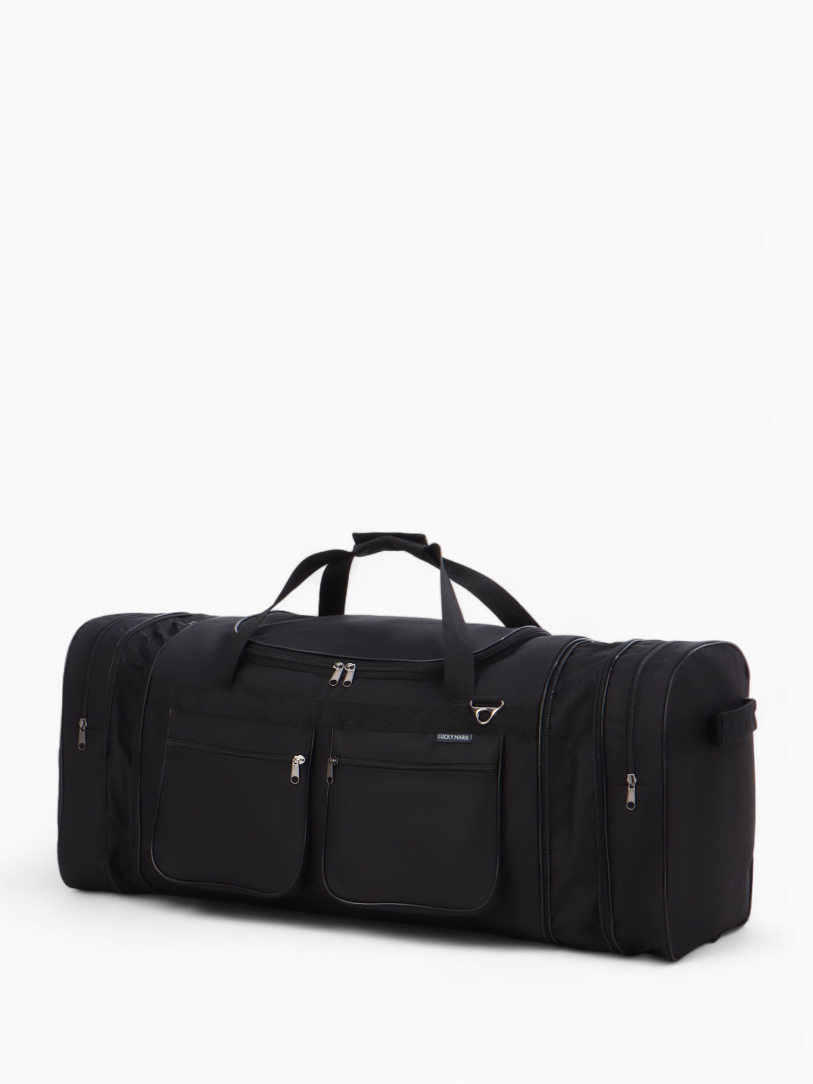 Сумка дорожная на молнии, с увеличением, 4 наружных кармана, длинный ремень, чёрная, 34x78x41 см., Lucky Mark, Россия