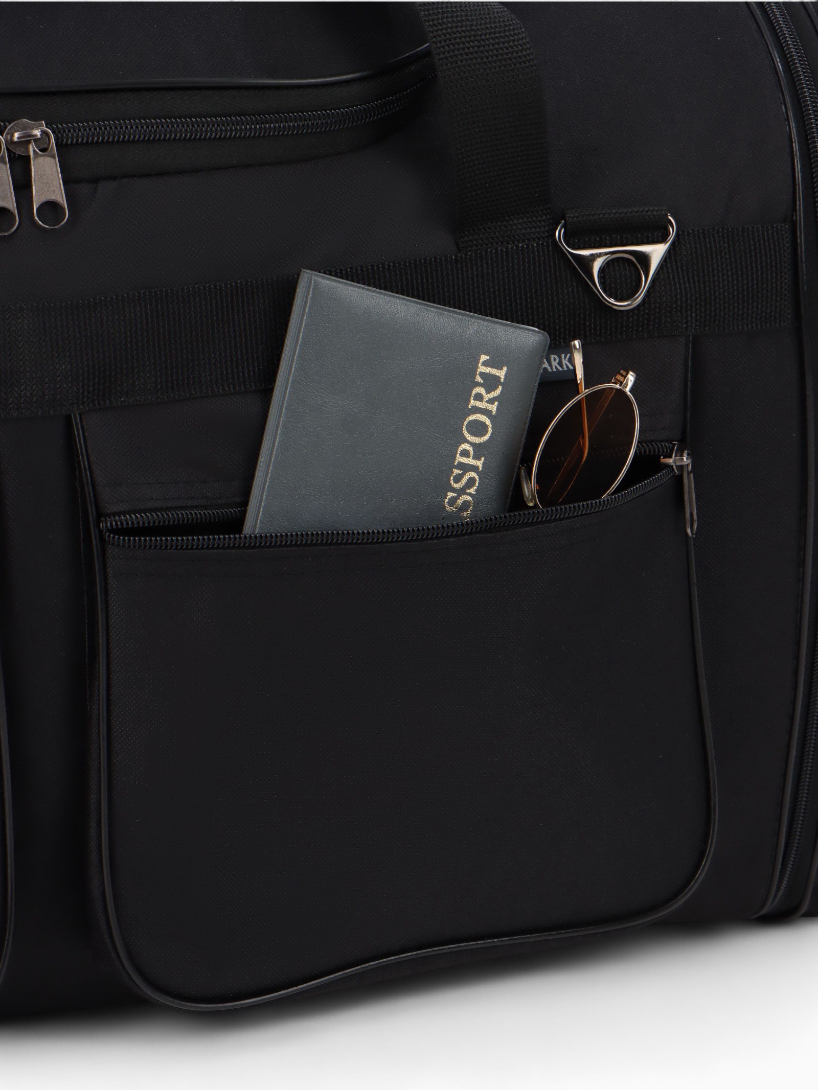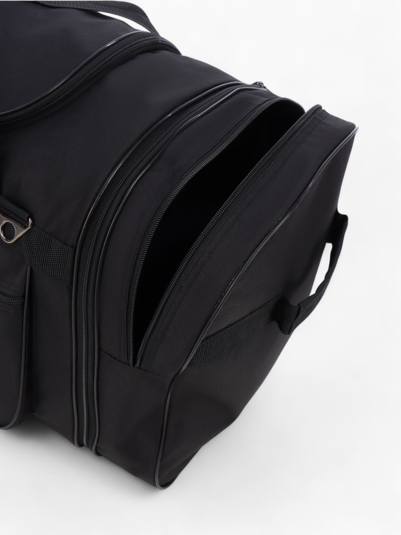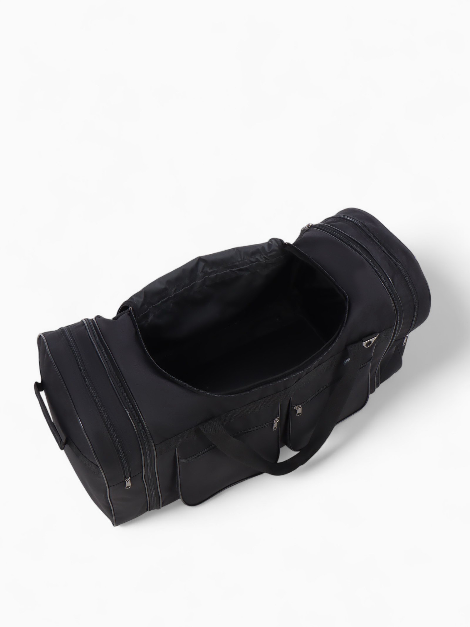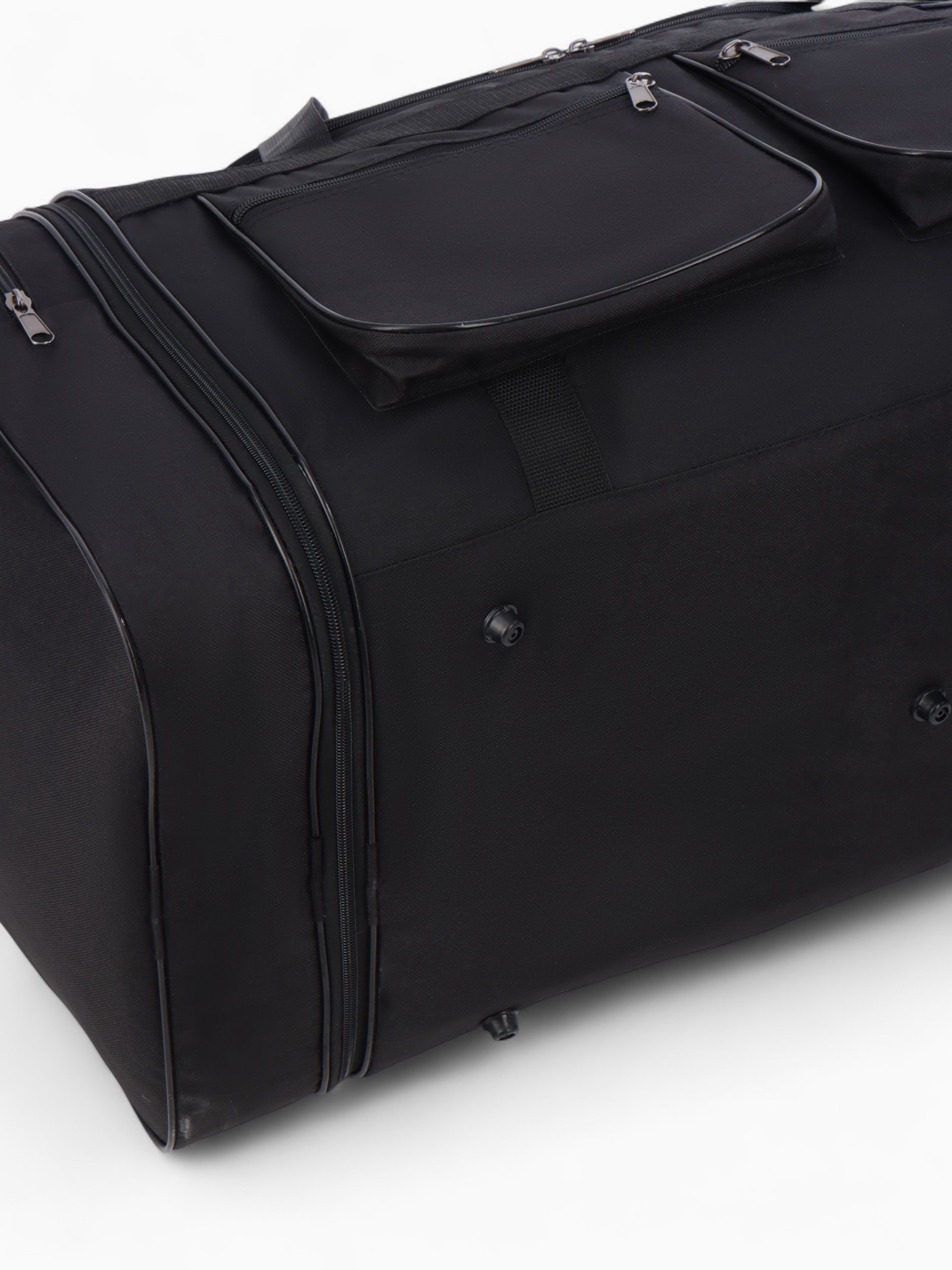 Сумка дорожная на молнии, с увеличением, 4 наружных кармана, длинный ремень, чёрная, 34x78x41 см., Lucky Mark, Россия