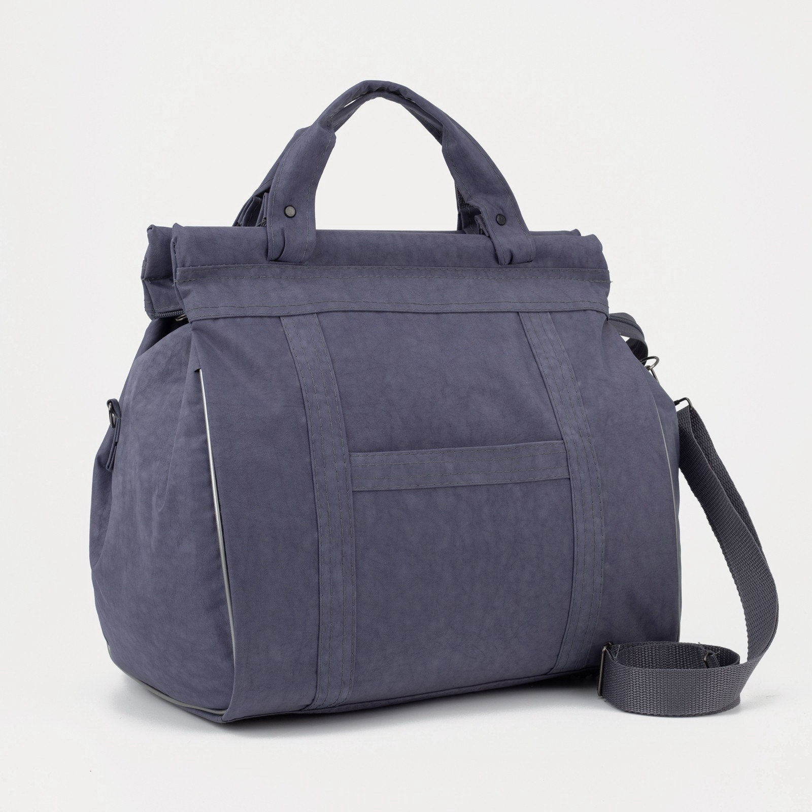 Сумка дорожная на молнии, наружный карман, длинный ремень, серая, 23x36x32 см., Lucky Mark, Россия
