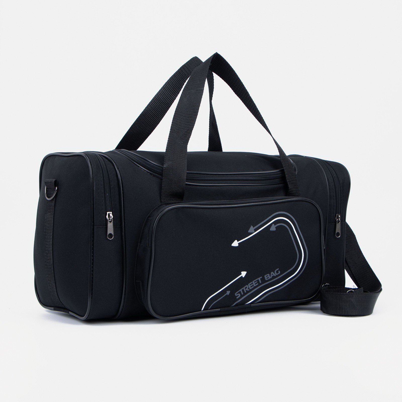 Сумка дорожная на молнии, 3 наружных кармана, длинный ремень, цвет чёрный/серый, 19x44x23 см., Luris, Россия