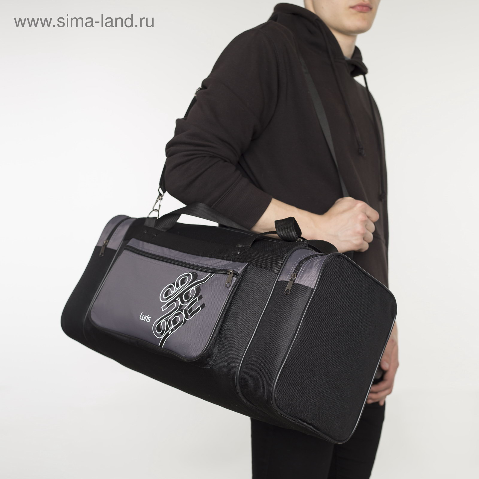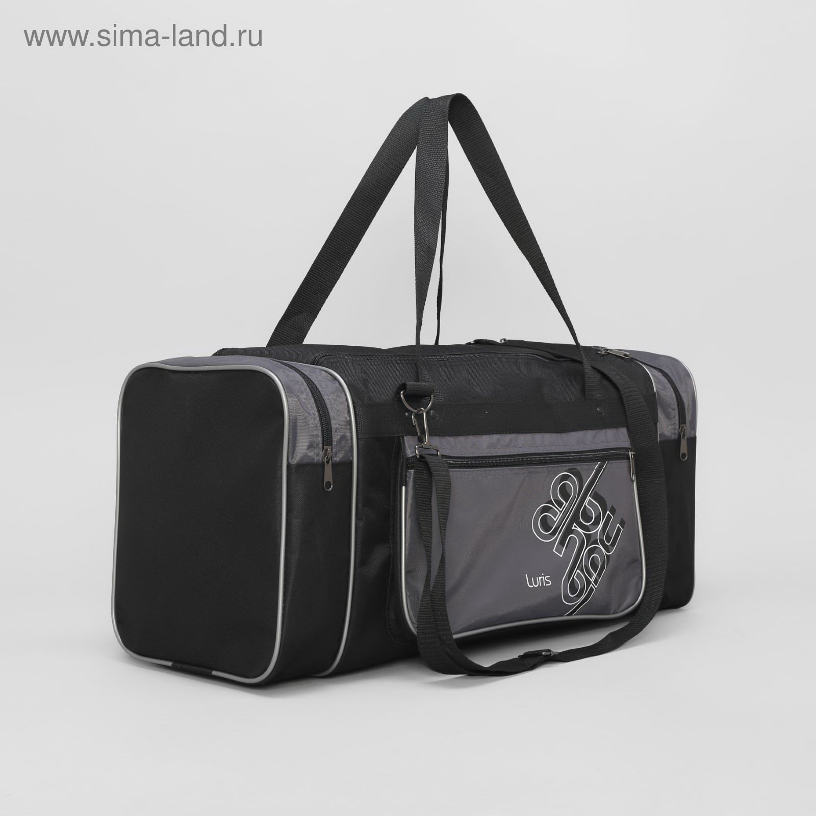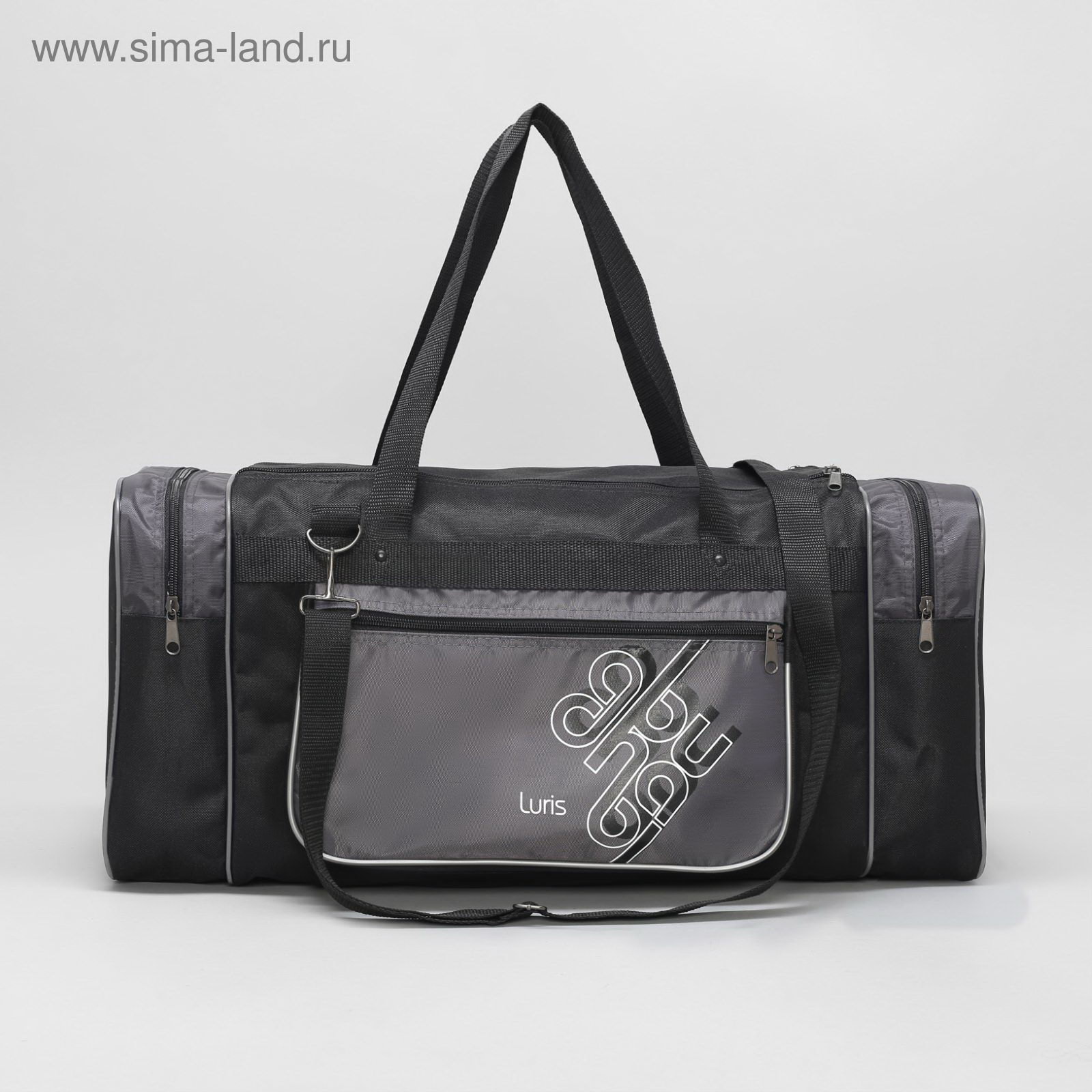 Сумка дорожная, 3 отдела на молниях, наружный карман, длинный ремень, цвет чёрный/серый, 22x55x26 см., Luris, Россия