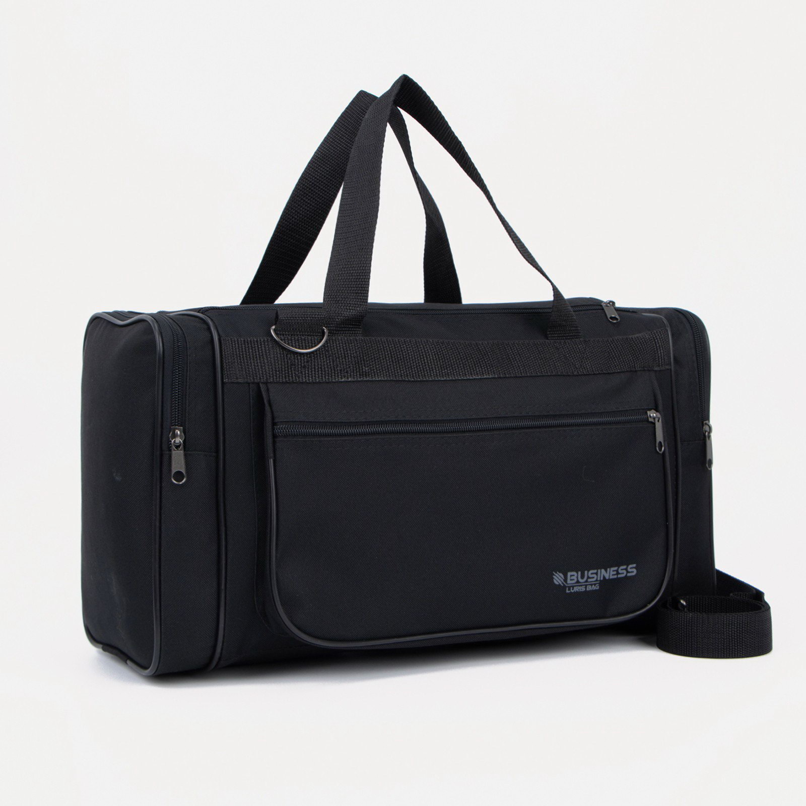 Сумка дорожная, 3 отдела на молниях, наружный карман, длинный ремень, чёрная, 17x46x24 см., Luris, Россия