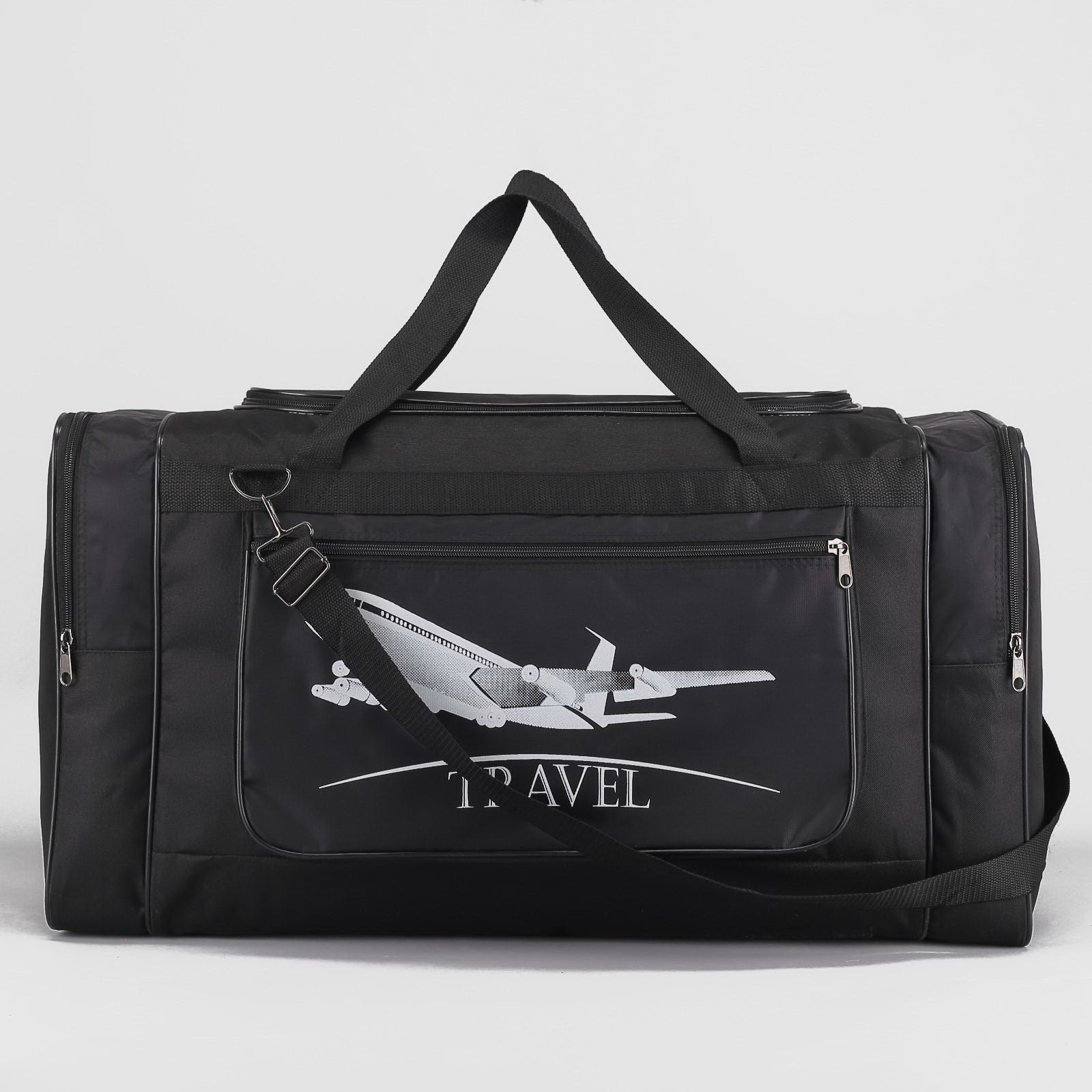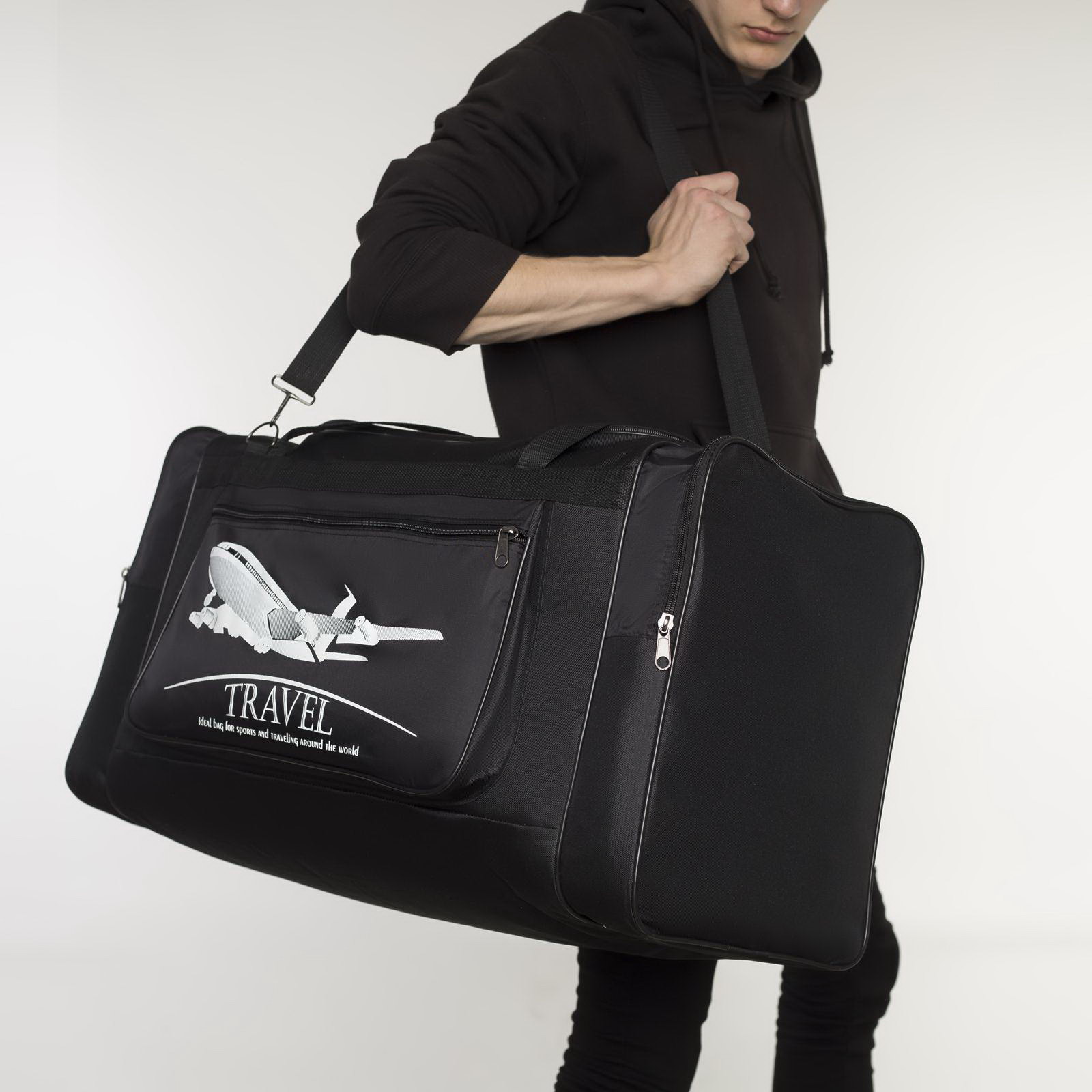 Сумка дорожная на молнии, 3 наружных кармана, длинный ремень, чёрная, 34x70x41 см., Luris, Россия