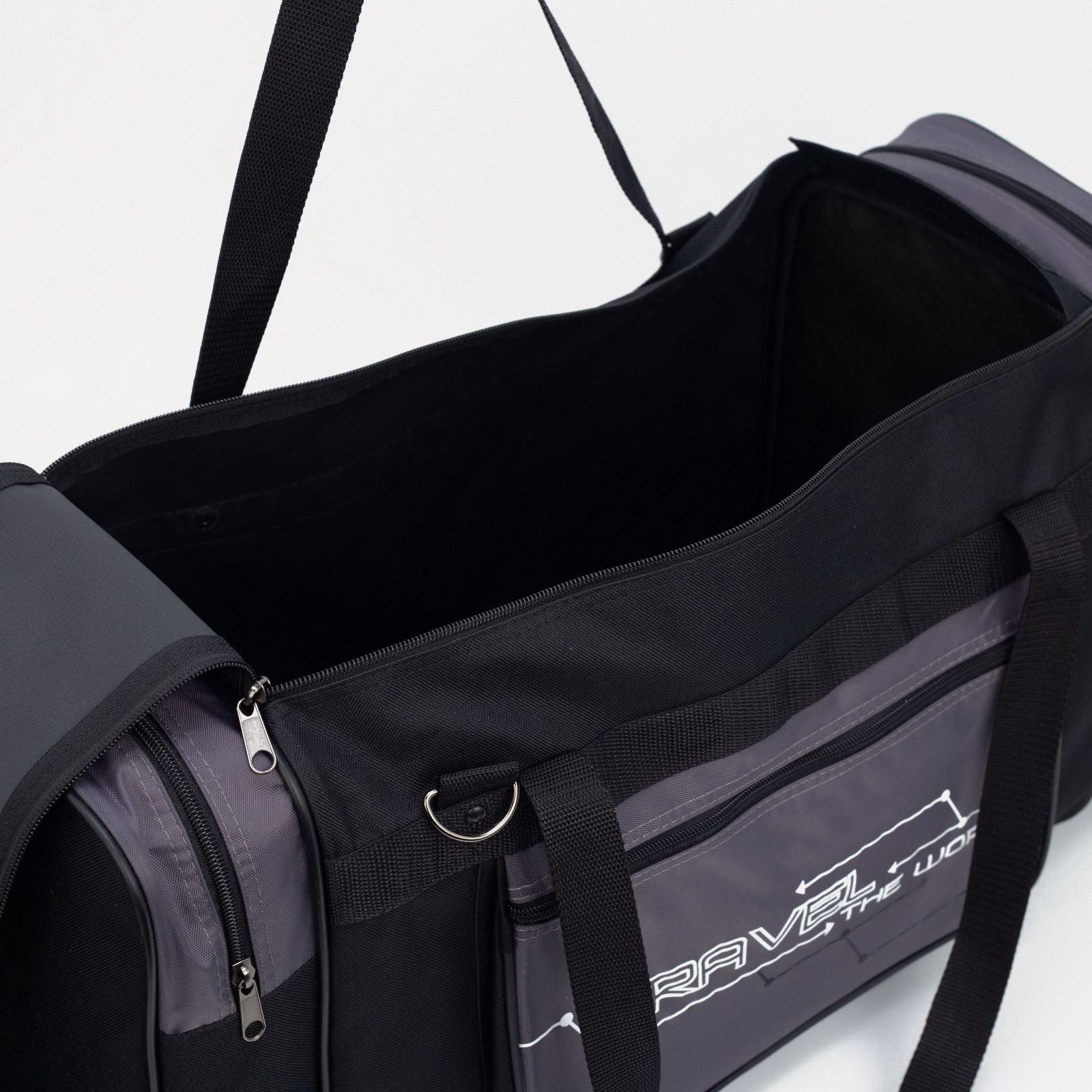Сумка дорожная на молнии, 3 наружных кармана, длинный ремень, цвет чёрный/серый, 22x60x30 см., Luris, Россия