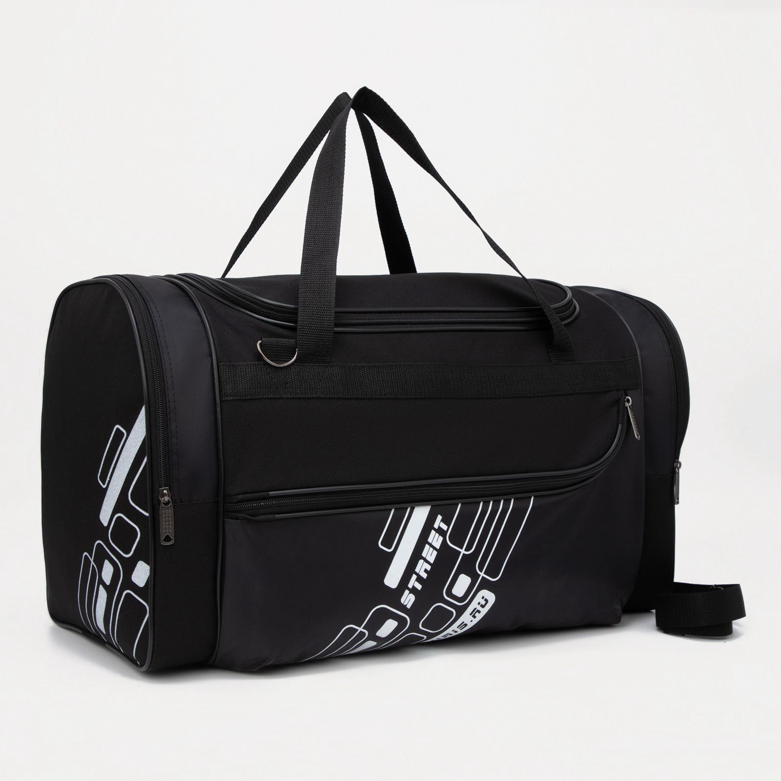 Сумка дорожная, 3 отдела на молниях, наружный карман, длинный ремень, цвет чёрный, 26x53x32 см., Luris, Россия