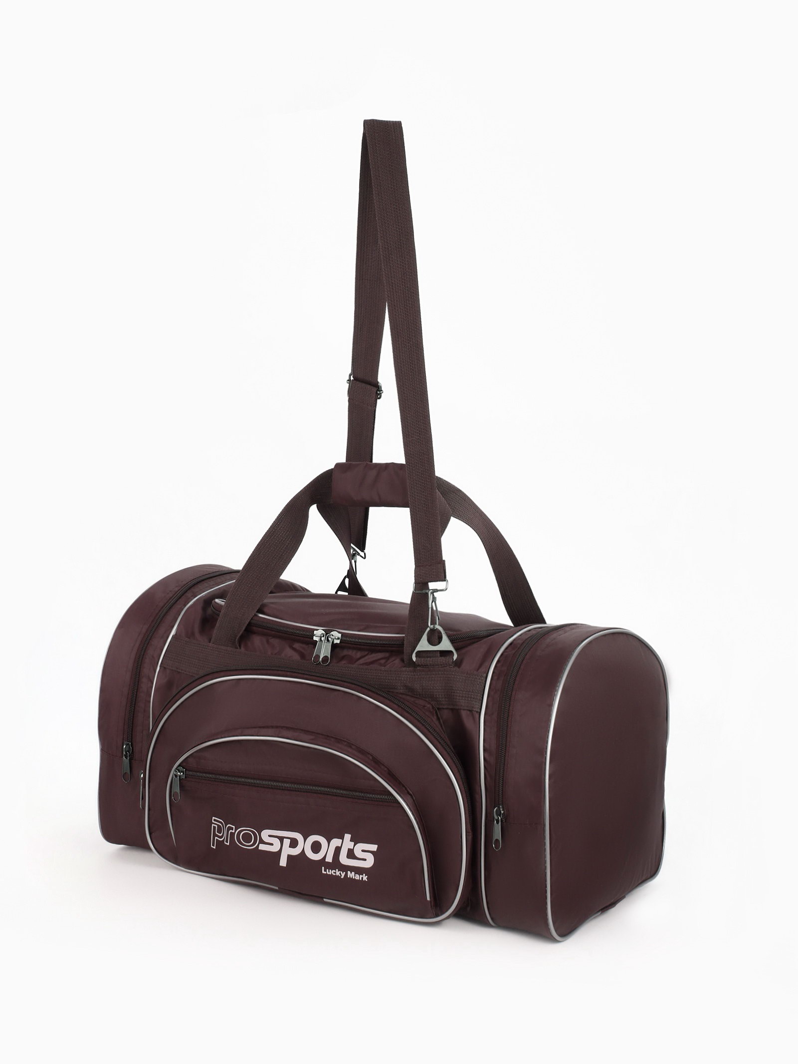 Сумка дорожная на молнии, 4 наружных кармана, длинный ремень, коричневая, 27x54x28 см., Lucky Mark, Россия