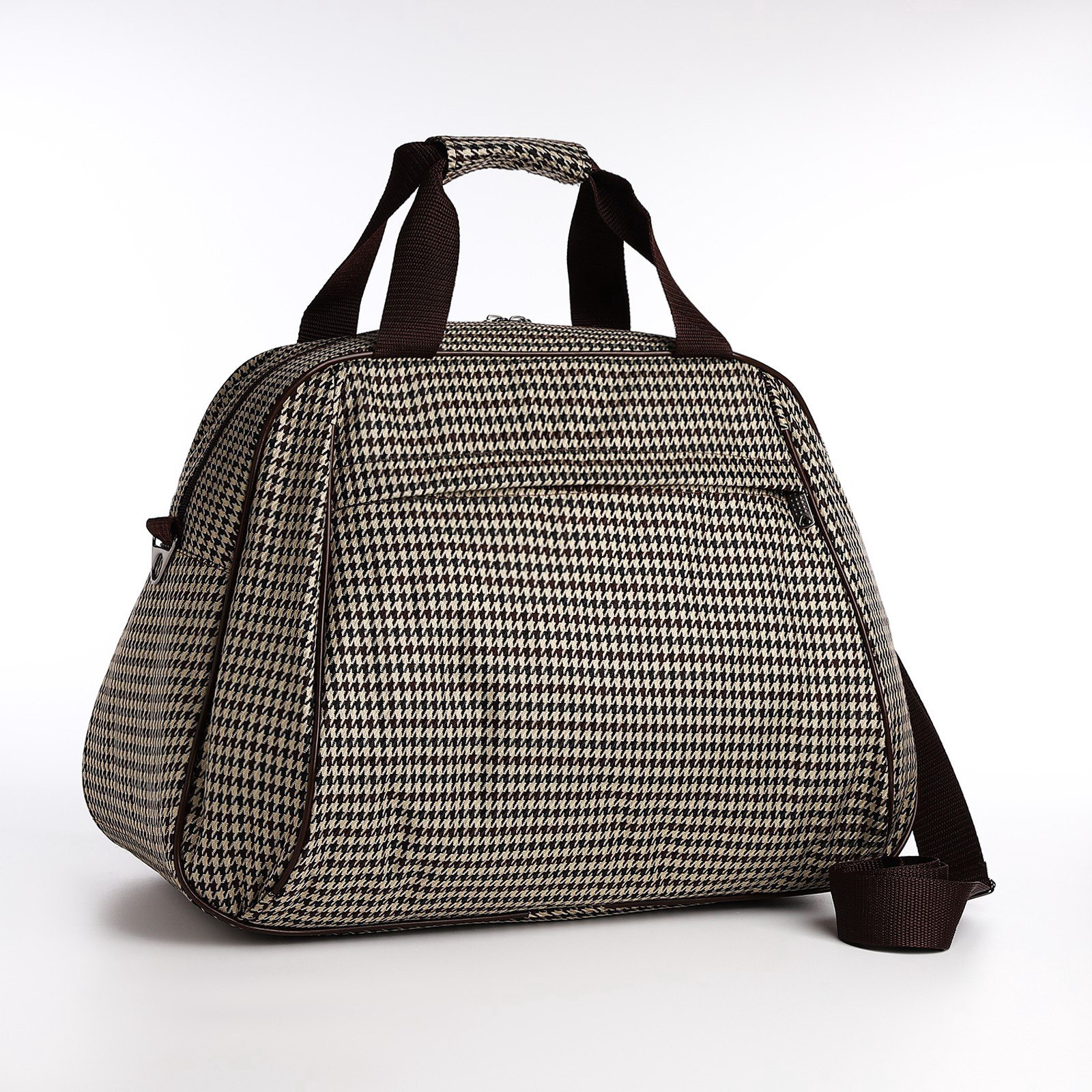 Сумка дорожная на молнии, 2 наружных кармана, длинный ремень, бежевая, коричневая, 22x48x34 см., Lucky Mark, Россия
