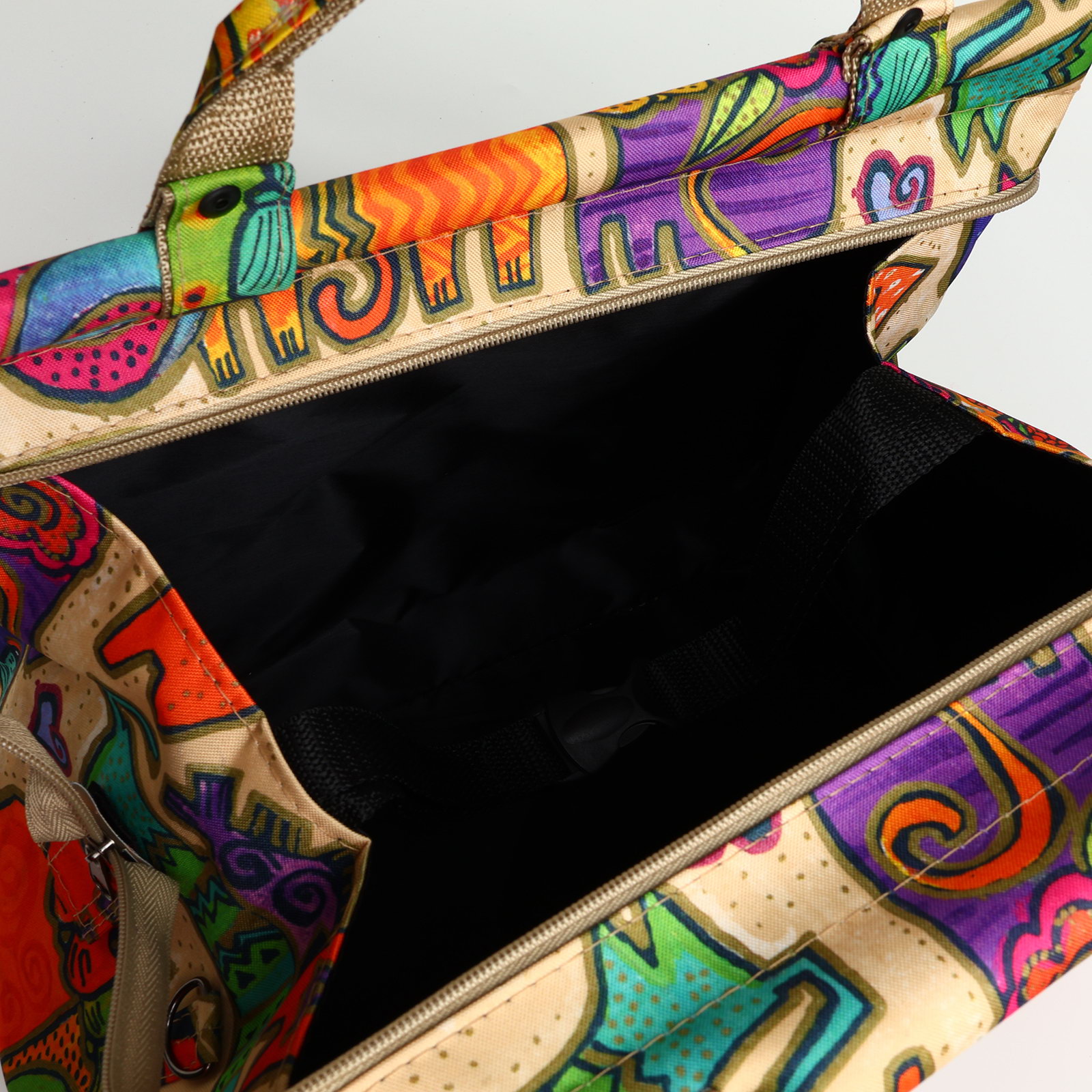 Размер упаковки: 5 x 33 x 37 см. Температурное ограничение: Нет Цвет: Разноцветный Модель сумки: Дорожная Дополнительный объём: Без увеличения Рисунок: Да tnved: 4202930000 Наличие символики РФ: Нет На колёсиках: Нет Длина, см: 36 Ширина, см: 23 Высота, см: 32 Для кого: Для женщины Тематика: Абстракция Отделение для обуви: Нет Вид застёжки: Молния Количество отделений: 1 Эта дорожная сумка с ярким принтом добавляет индивидуальности поездкам. Разноцветный рисунок создаёт настроение, а текстильная основа делает аксессуар лёгким и практичным. Особенности