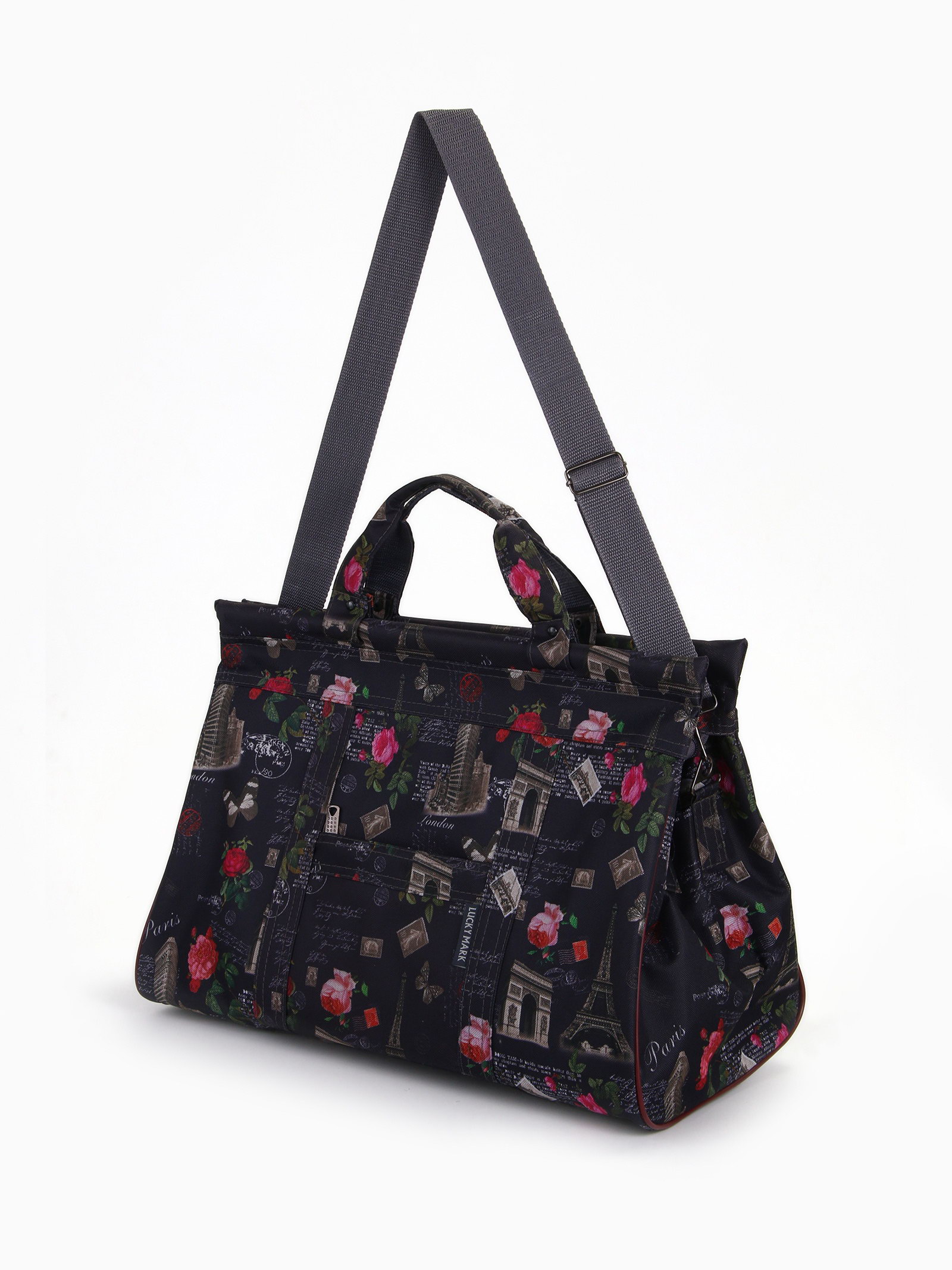 Сумка дорожная на молнии, наружный карман, длинный ремень, тёмно-серая, 22x46x30 см., Lucky Mark, Россия