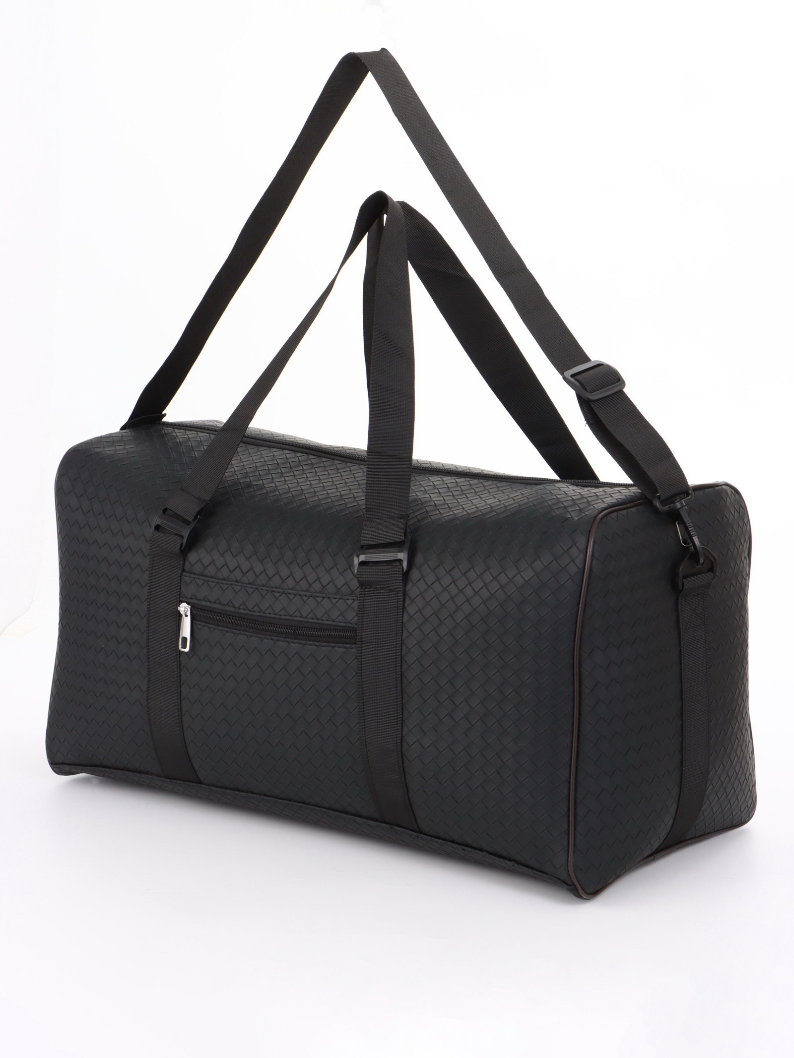 Сумка дорожная, искусственная кожа, 2 кармана, длинный ремень, 54x26x29 см, чёрная, 26x54x29 см., Китай